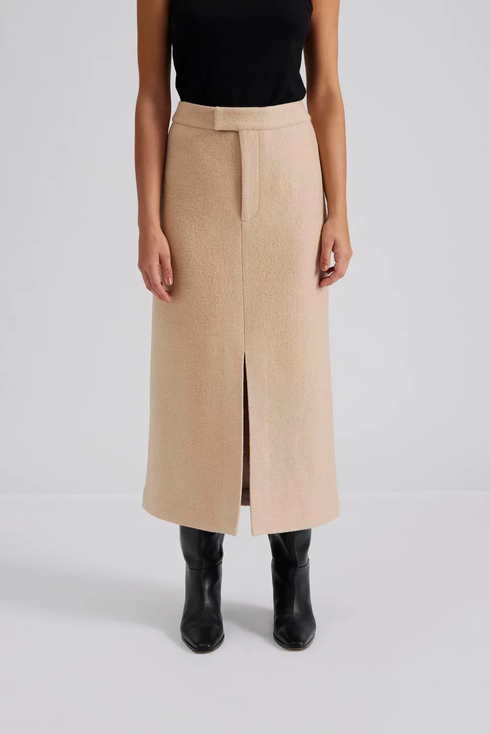 Midikjol i ullblandning med slits framtill.