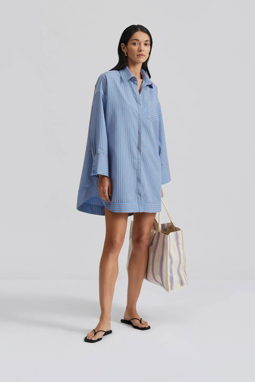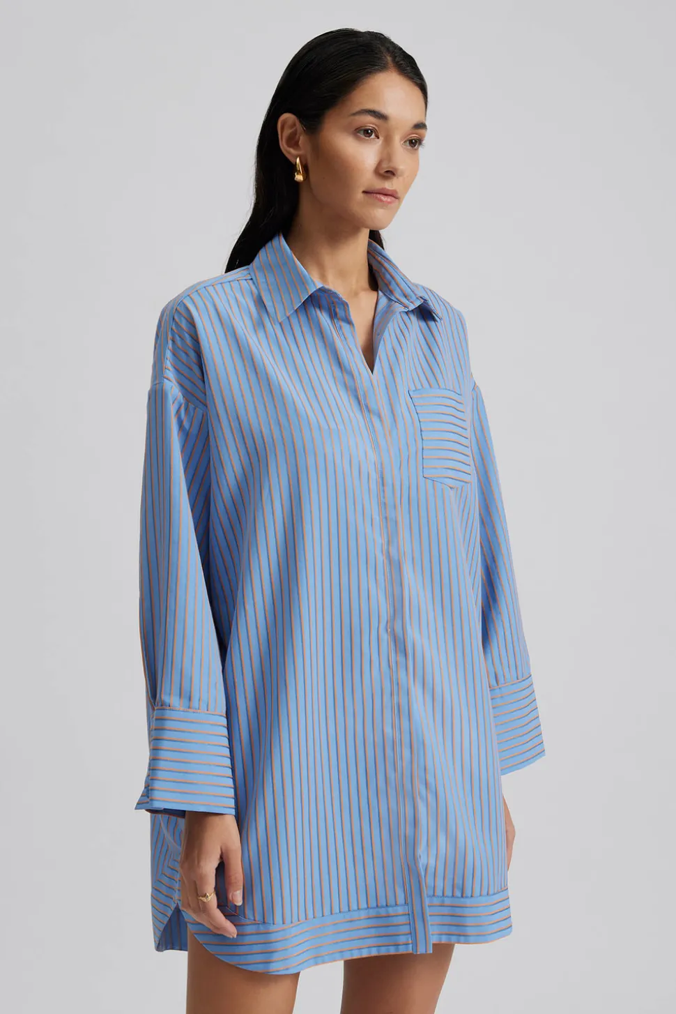 Randig skjortklänning med en ficka.