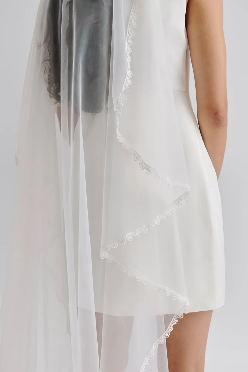 Spetsslöja med bohemisk känsla, går att fästa med två kammar för att rama in din frisyr.