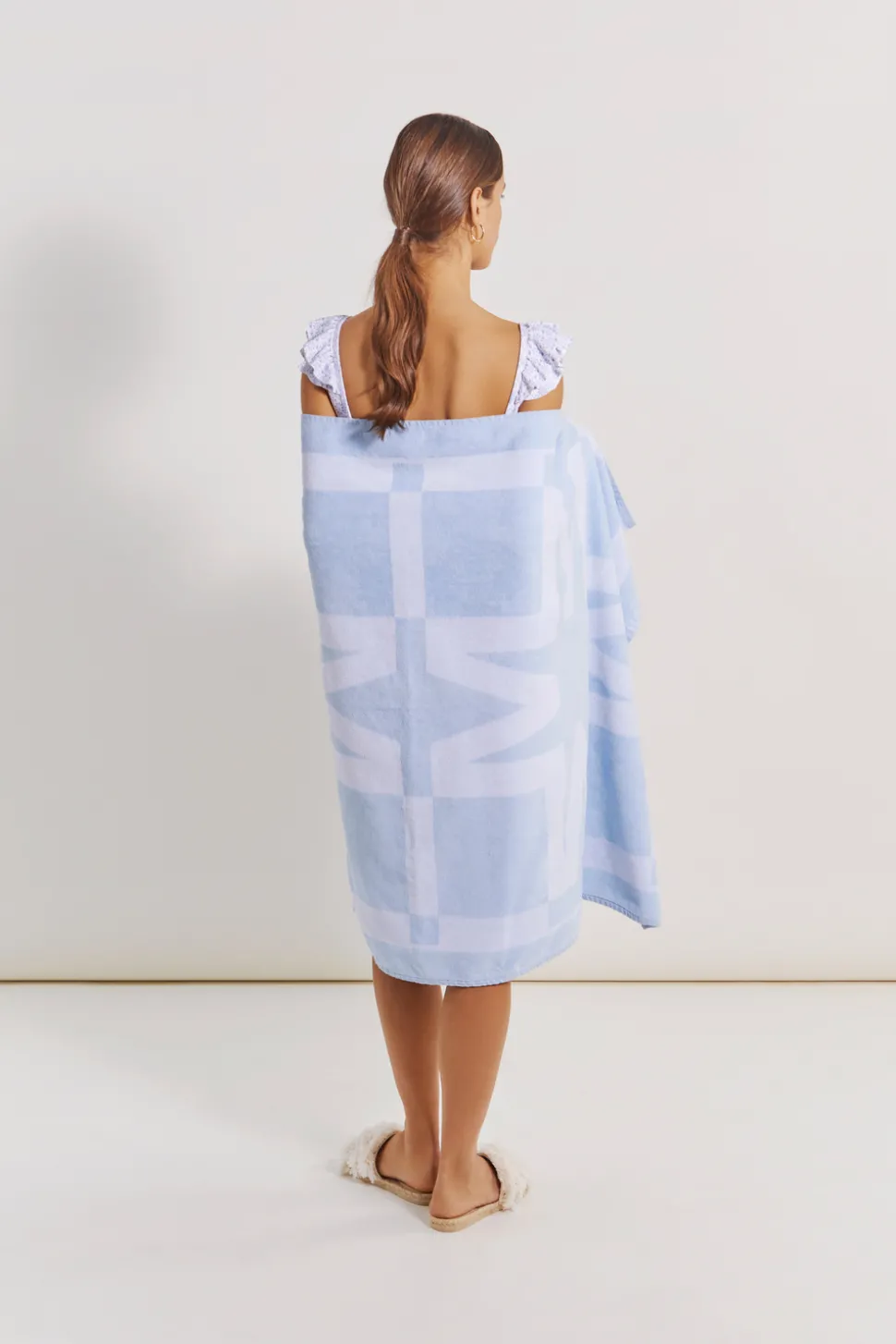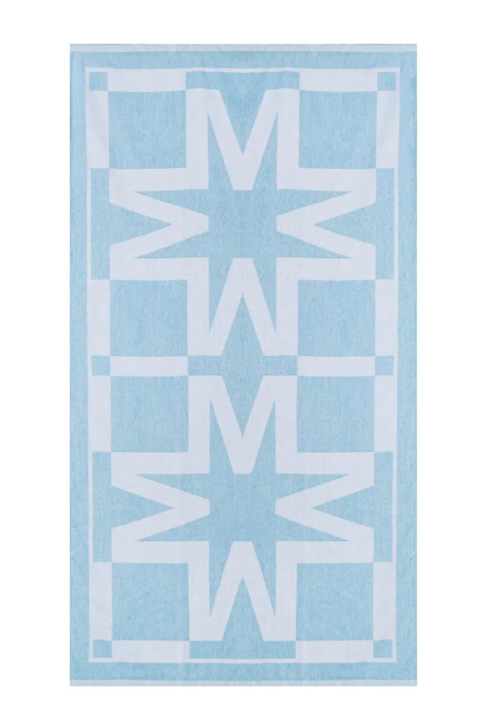 Strandhandduk i Malina signaturtryck på båda sidor.