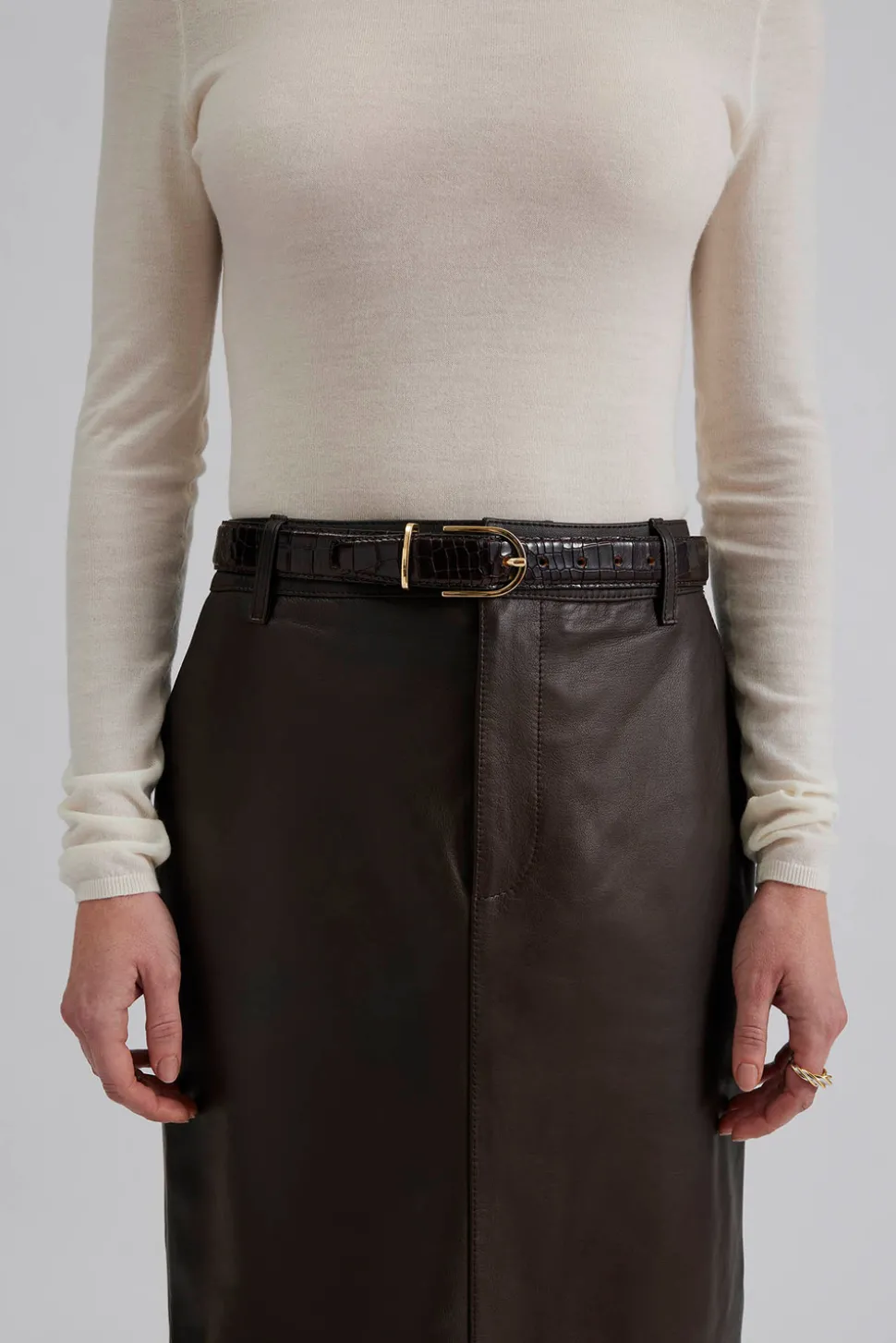 Läderbälte med spänne i guld.