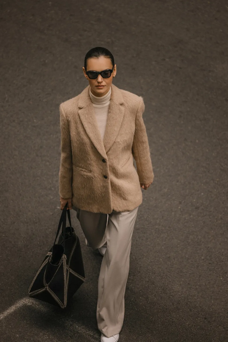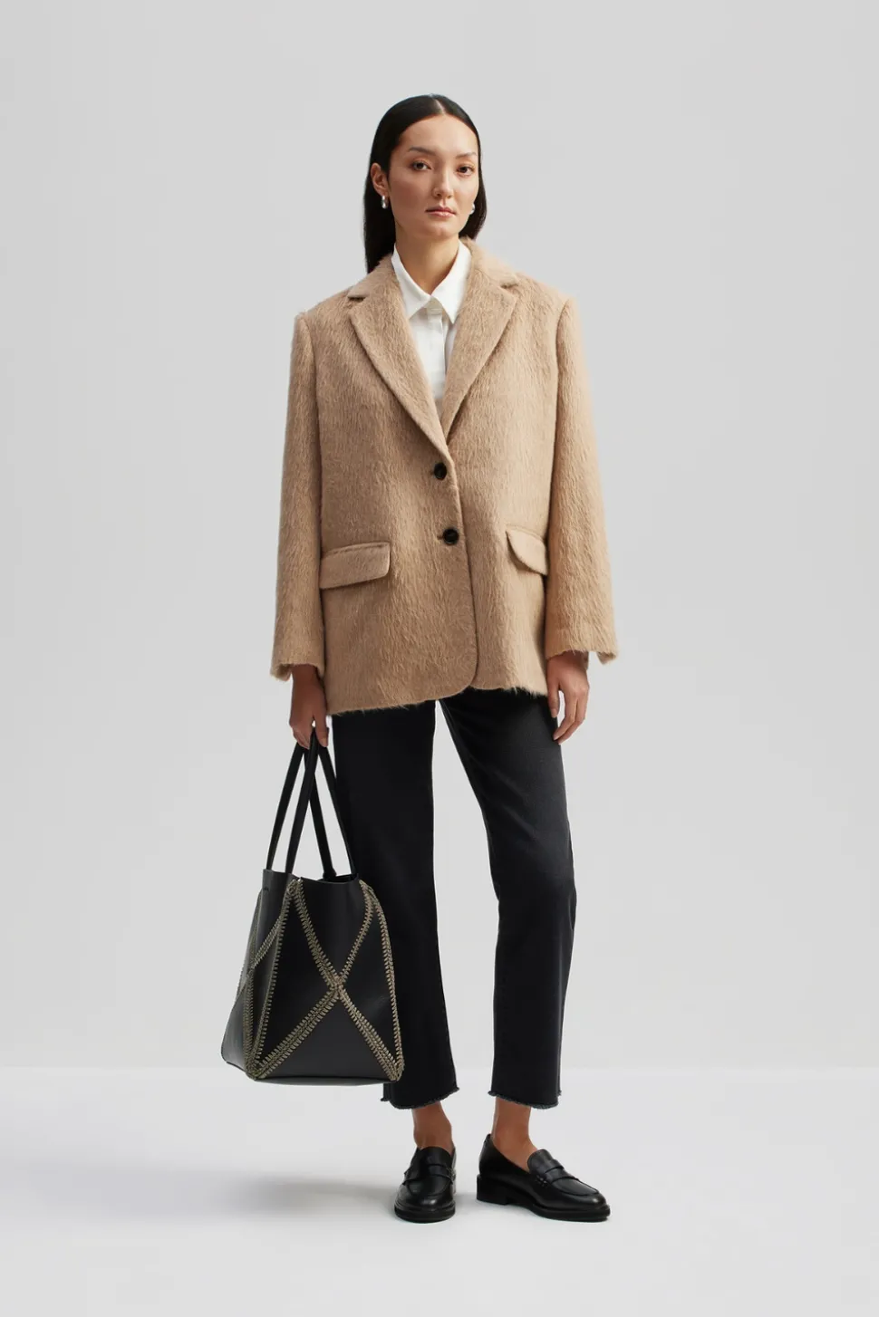 Oversized jacka i alpacka och ullblandning. Jackan är i blazer stil med knappar och fickor framtill