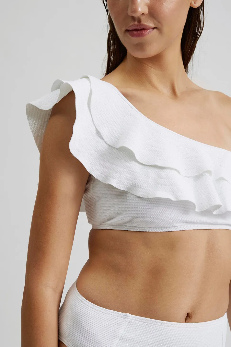 Bikinitopp i en axeldesign med söta volangdetaljer.