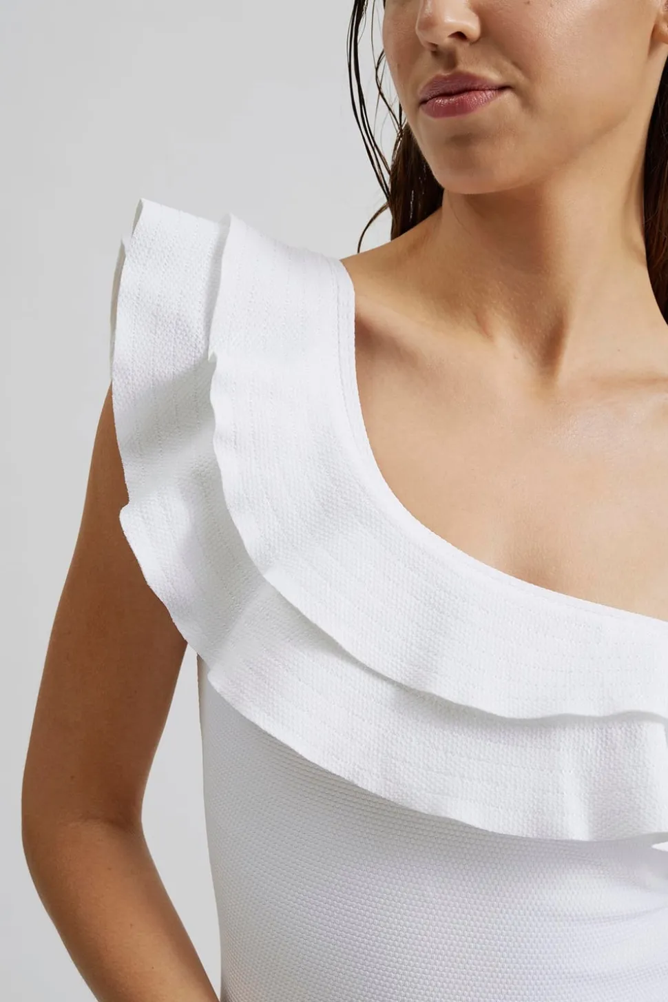 Enaxlad baddräkt med volangdetaljer och utskärning i ryggen
