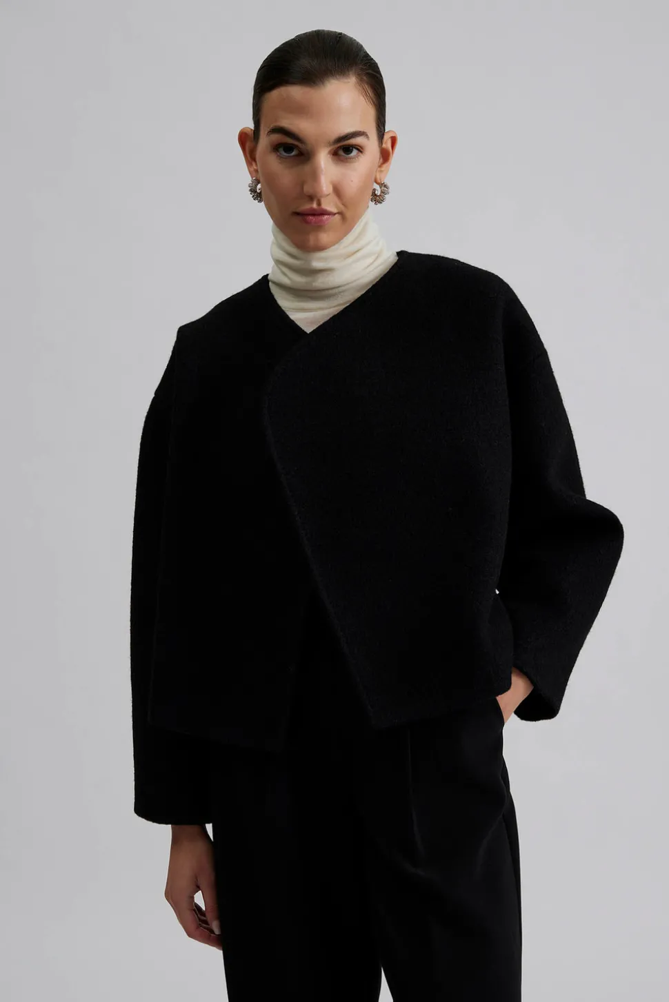 Croppad jacka i en ullblandning