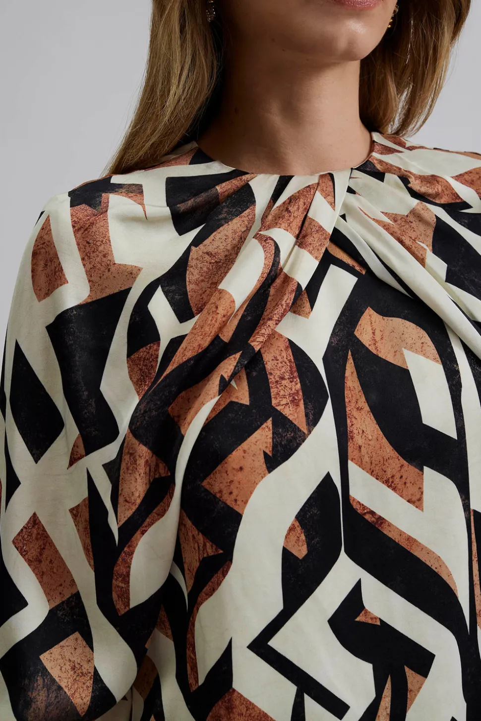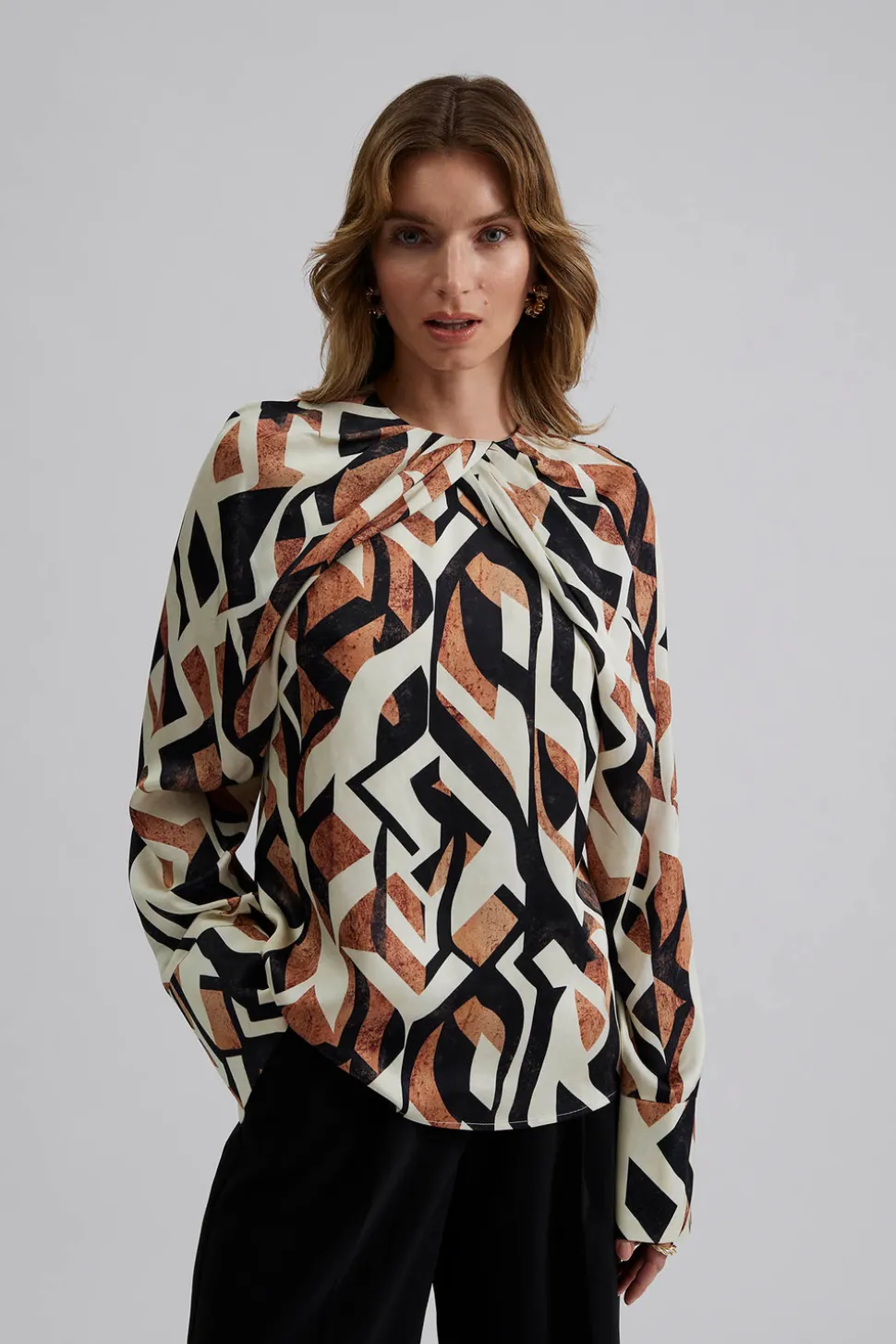 Blus i lös passform med veckad halsringning och långa ärmar.