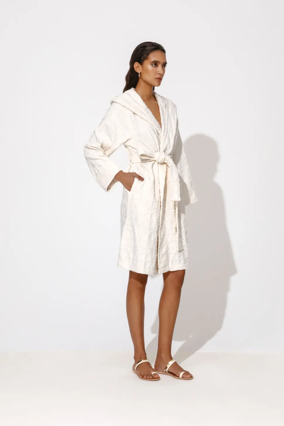 Långärmad morgonrock med luva och midjeband. Dekorerade med Malinas ikoniska logga.