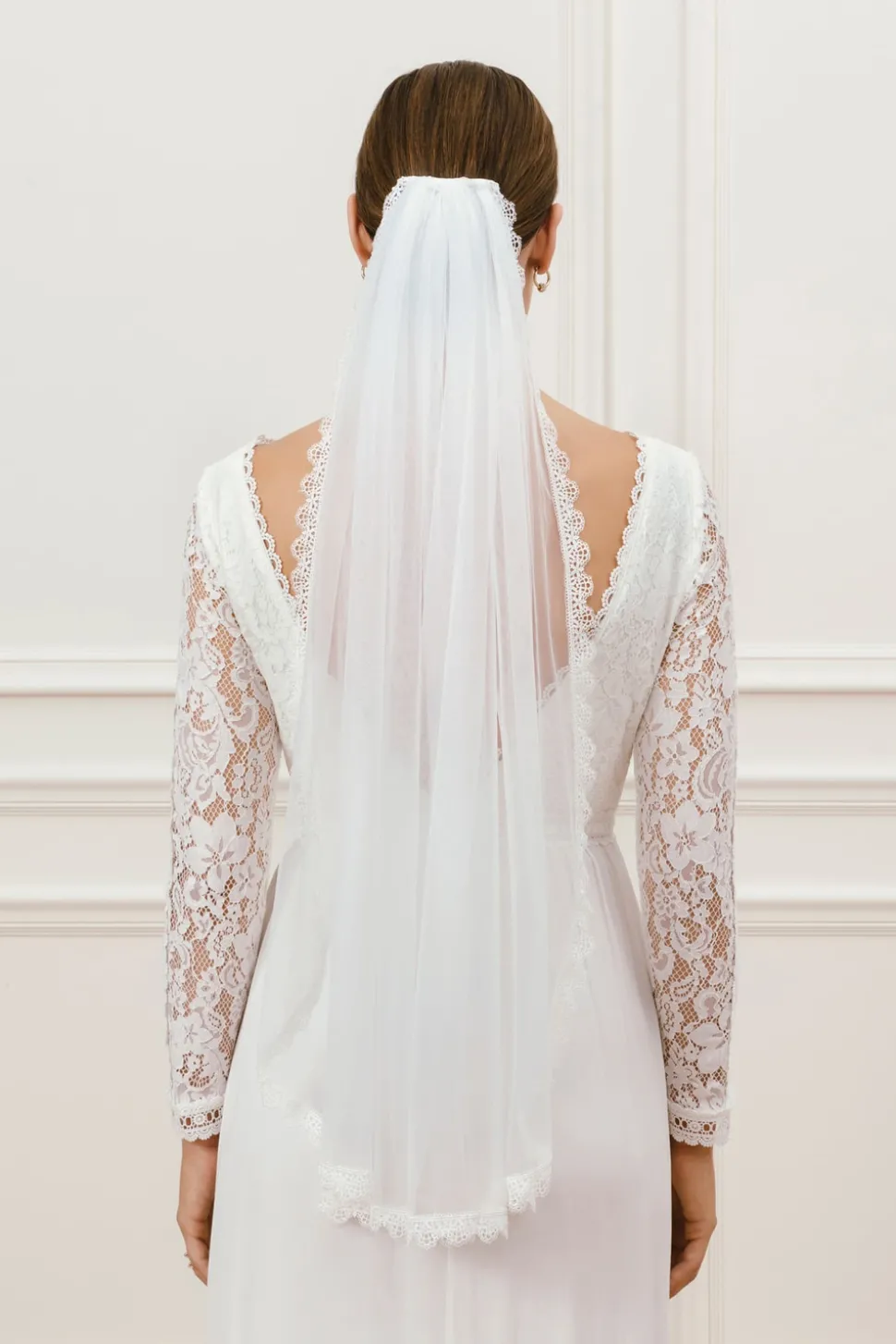 Kort slöja dekorerad med en tunn spetskant.