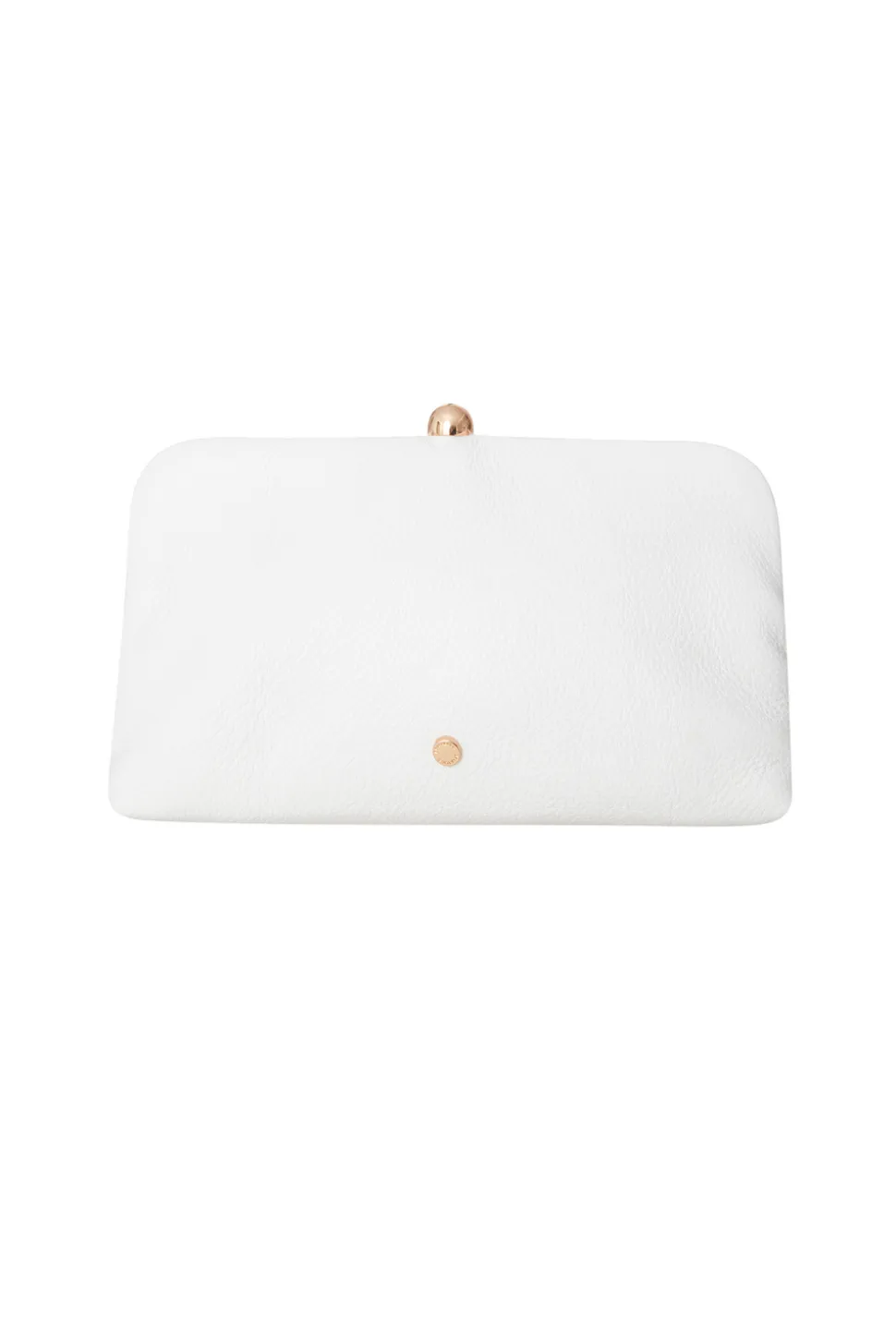 Läderclutch med gulddetaljer. Bär den i handen eller med den tillhörande guldkedjan.