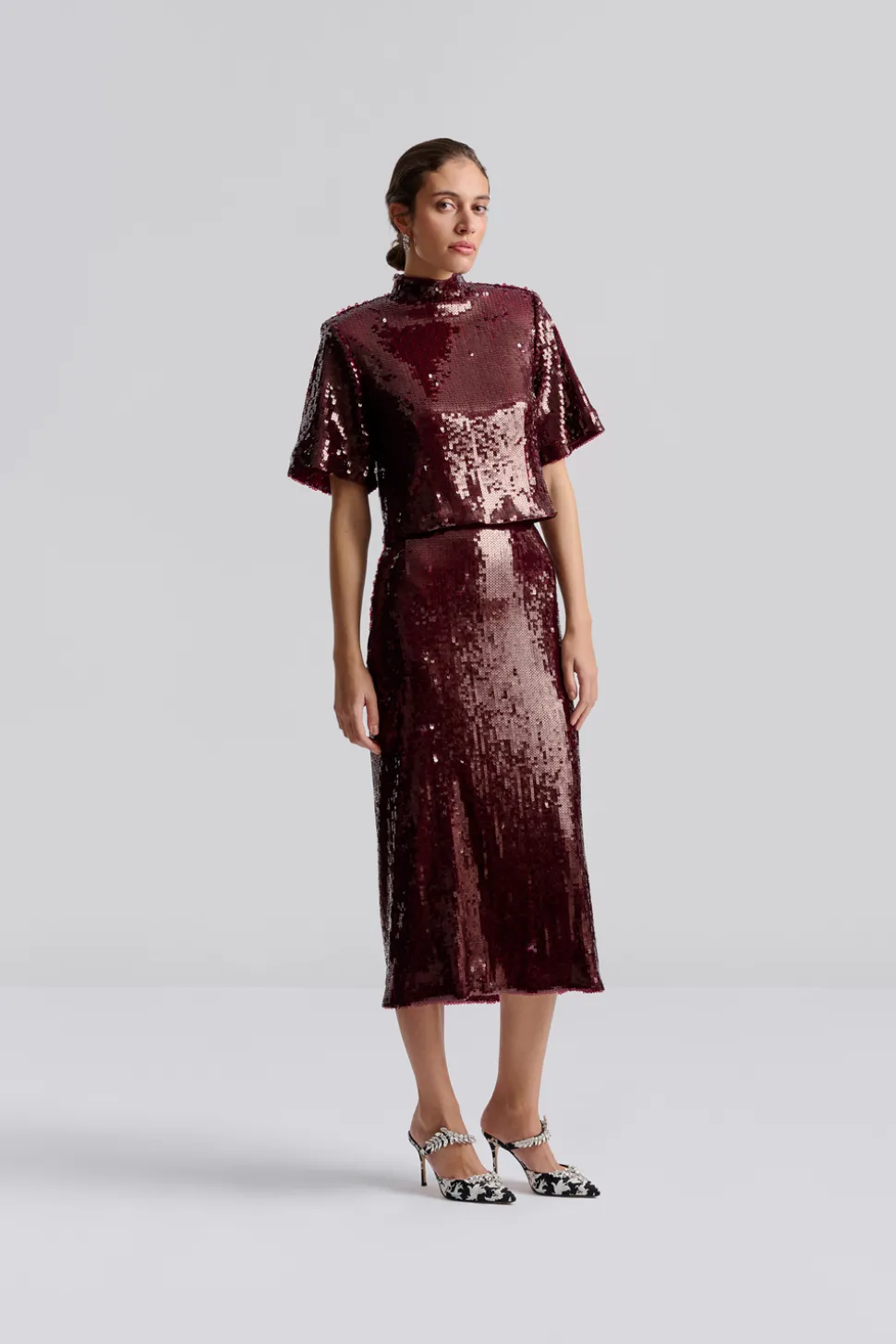 Paljettopp med kort ärm och halvpolo