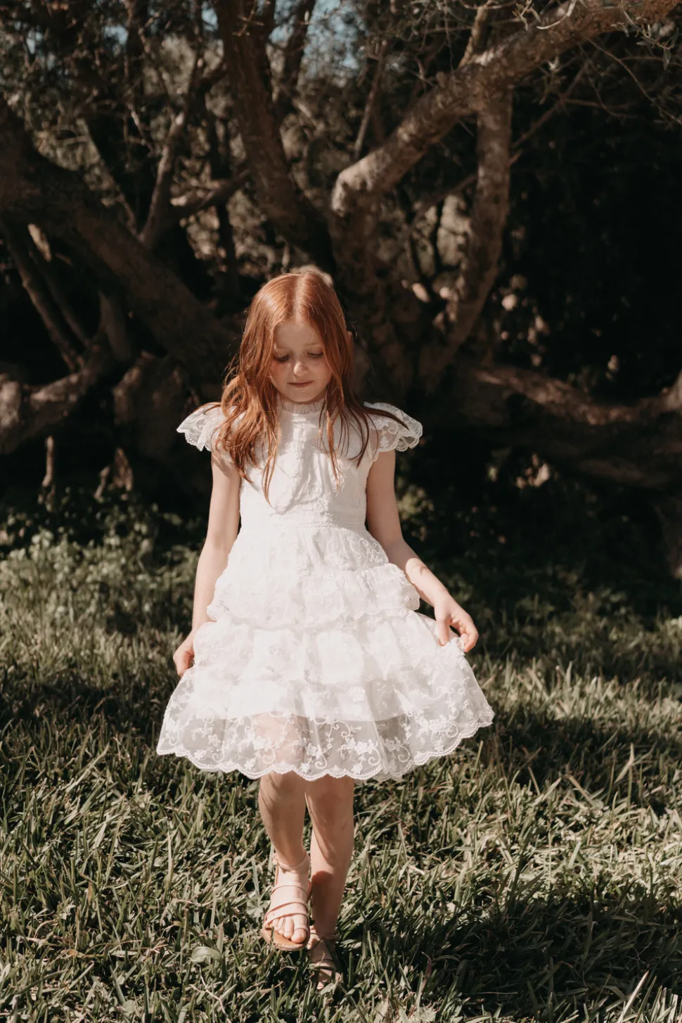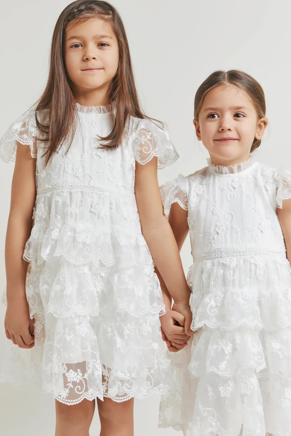Brudnäbbsklänning med broderade spetsdetaljer. Matcha med Camille brudklänningen för en komplett look.