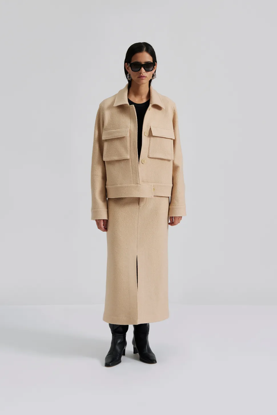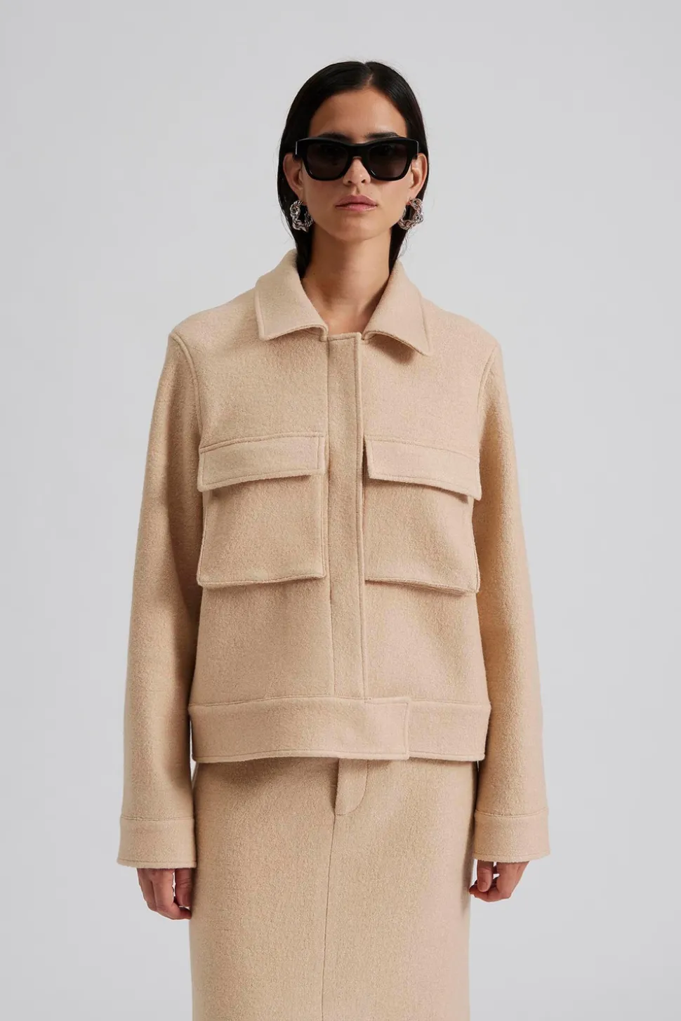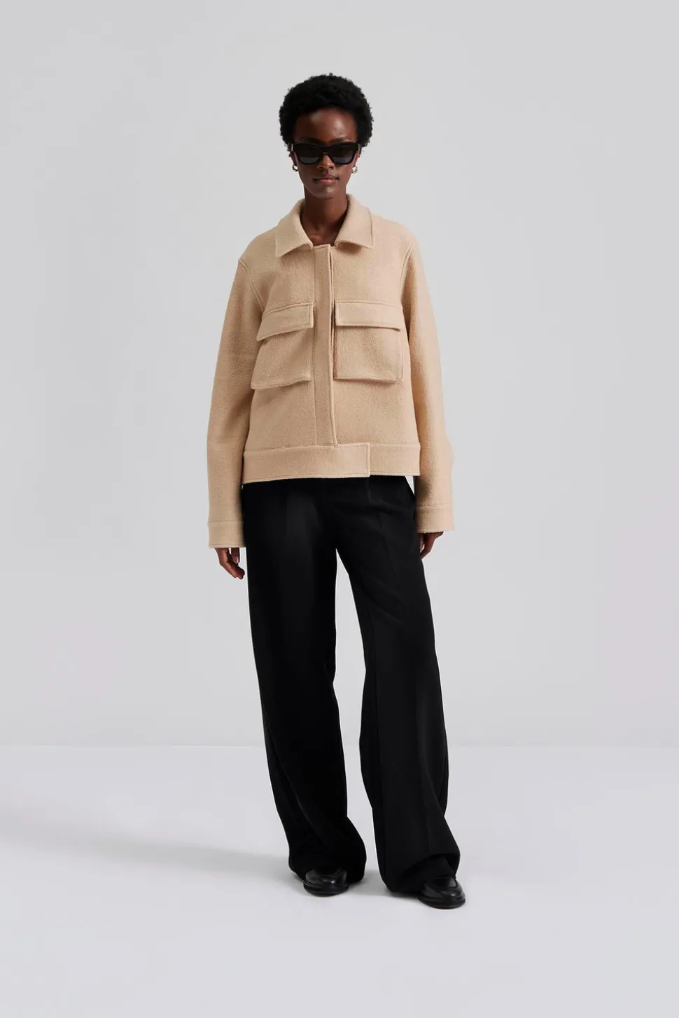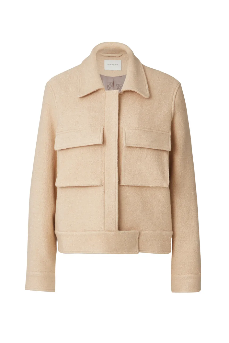 Bouclejacka i ullblandning med fickor fram, knappar och boxig passform.