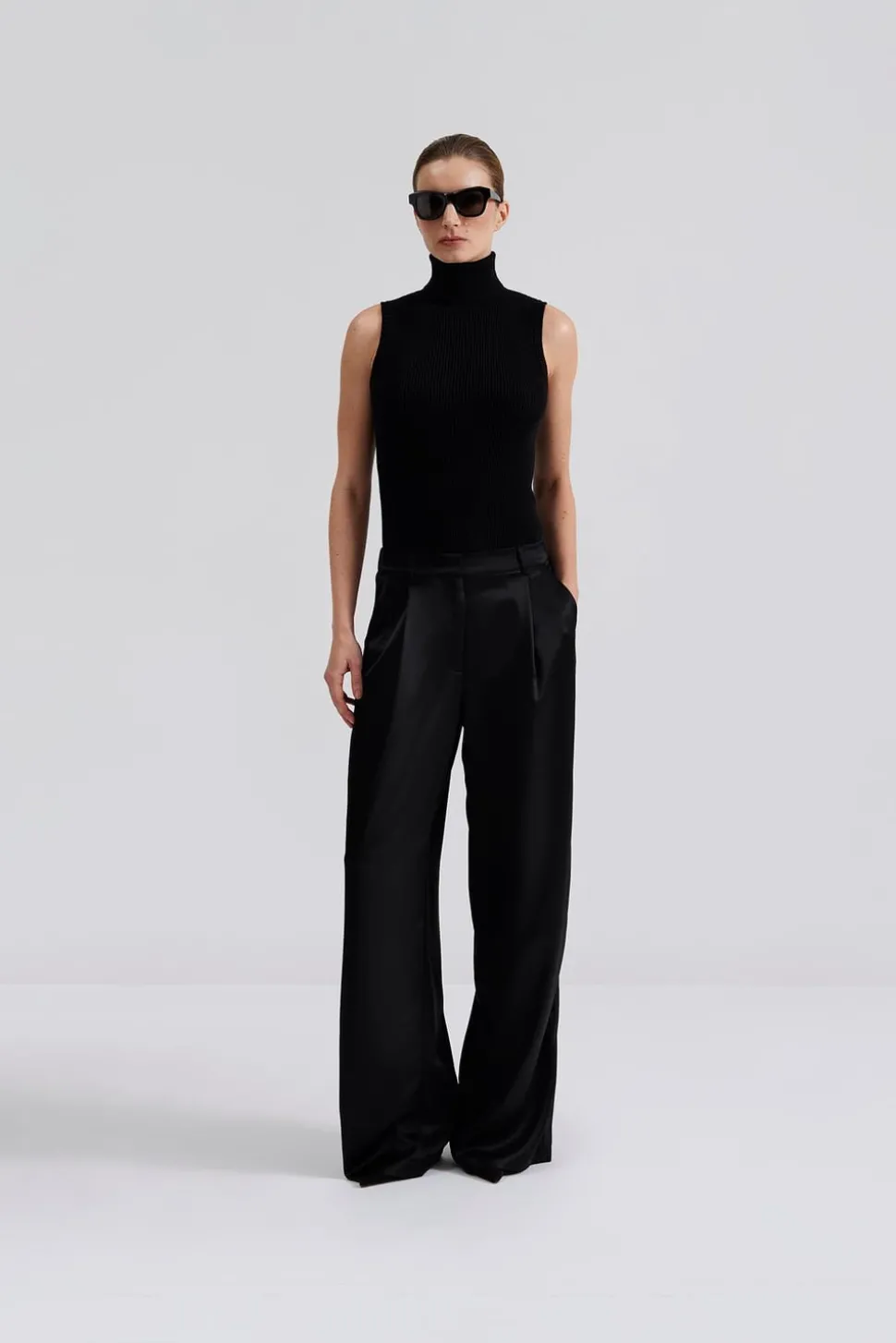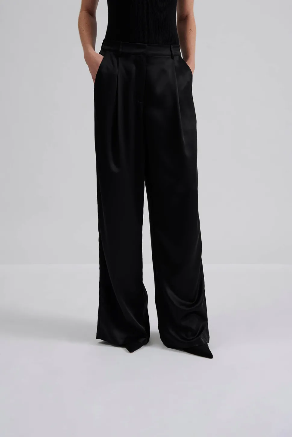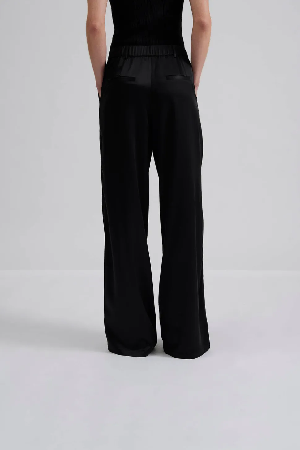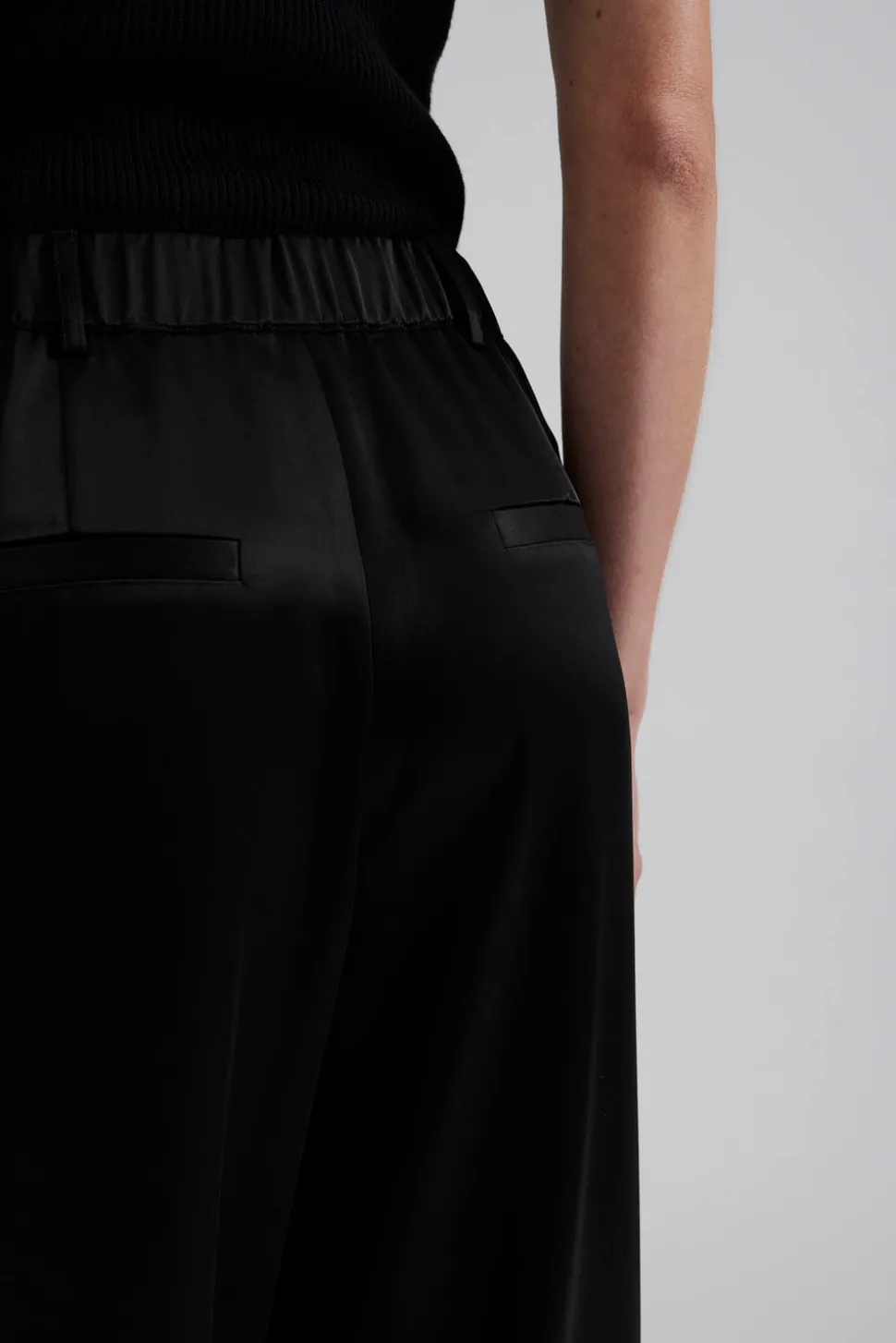 Högmidjad satin byxa med elastisk midja