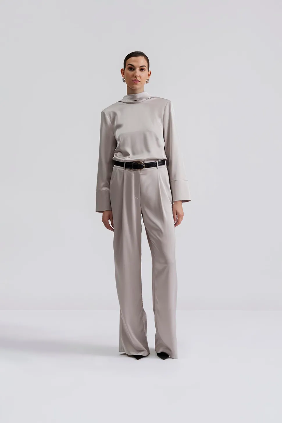 Högmidjad satin byxa med elastisk midja