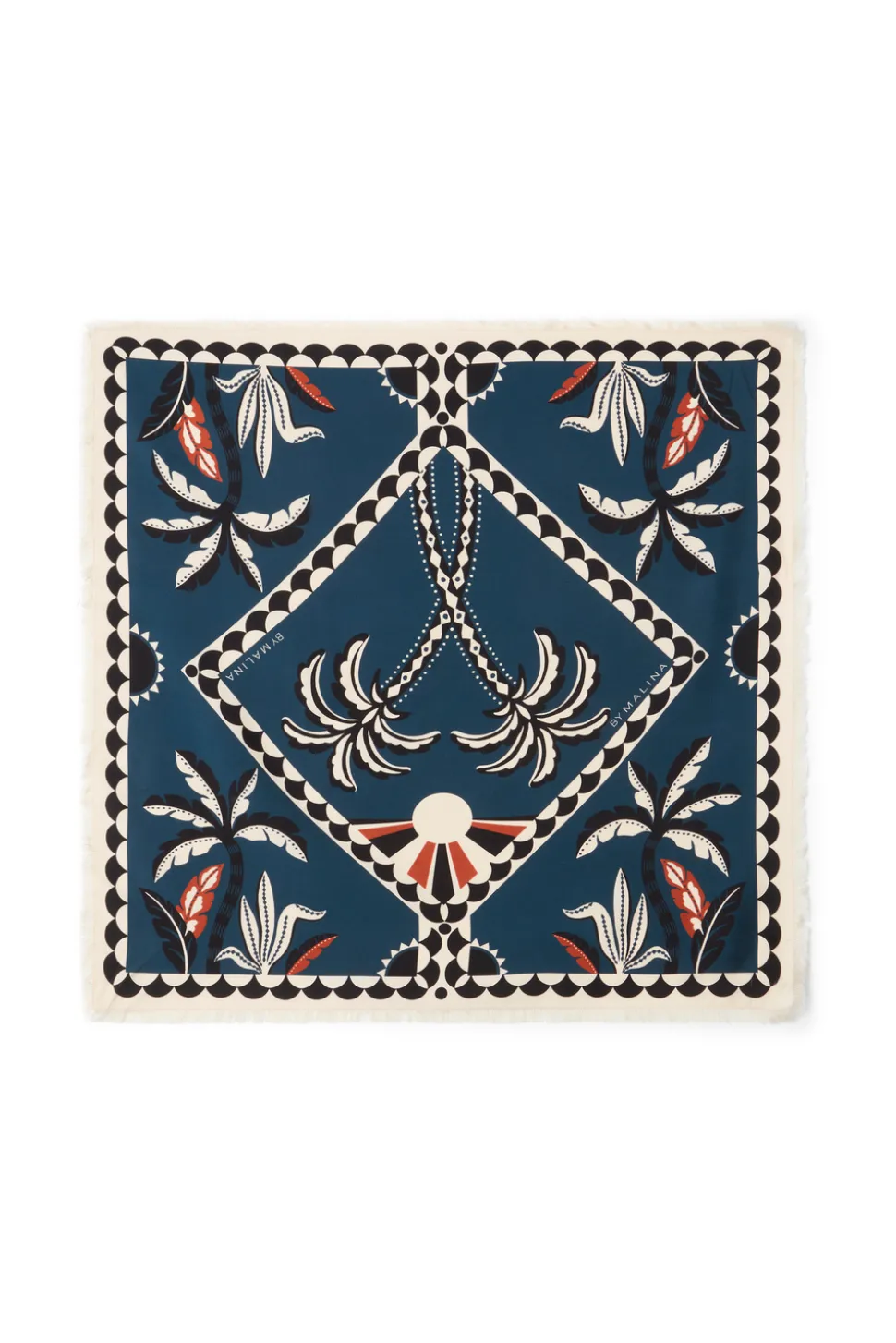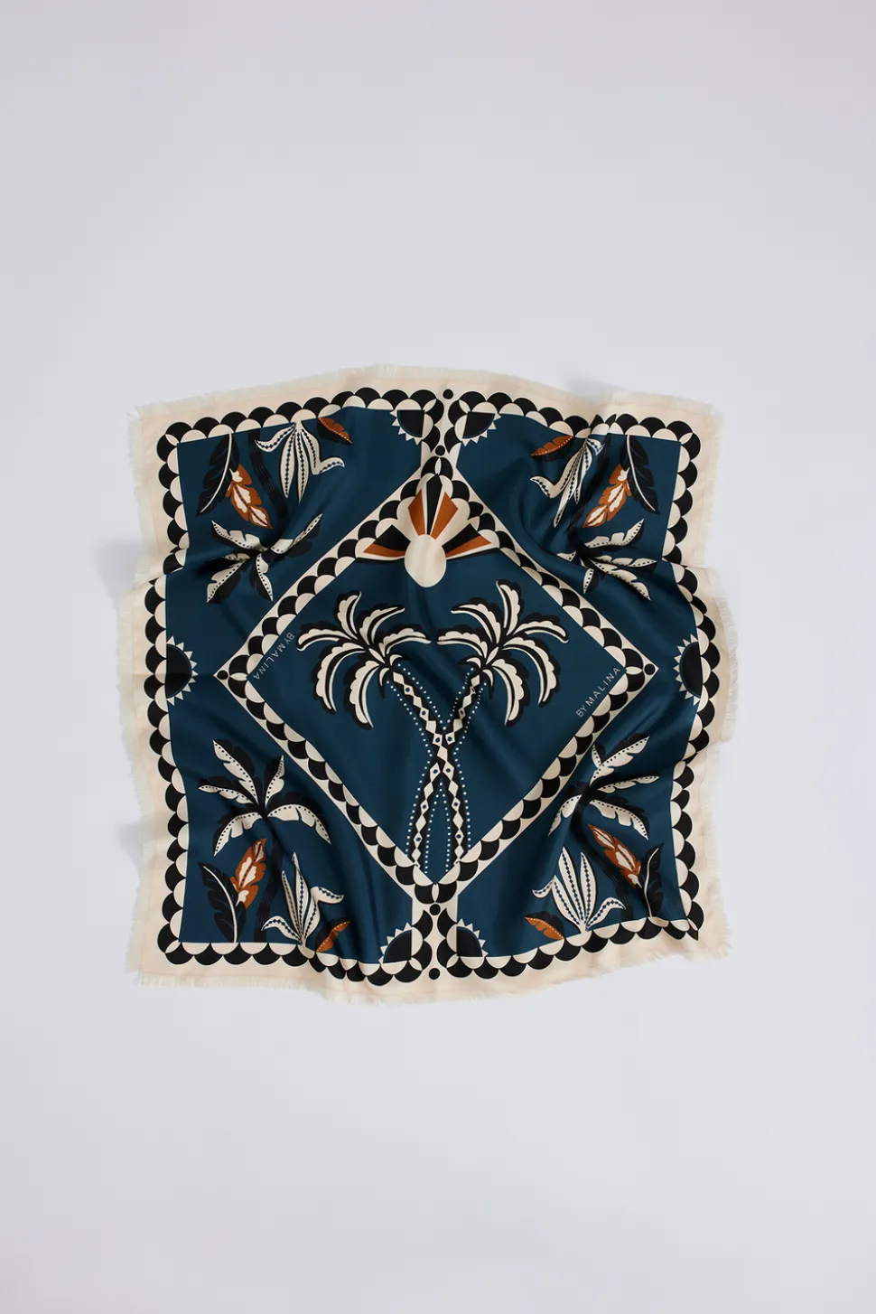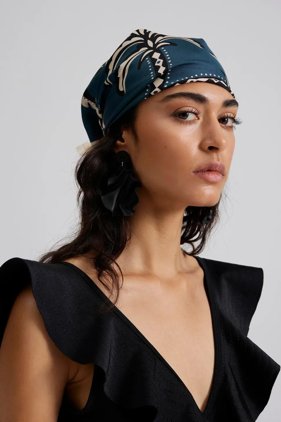 Silkes sjal i fint print med små volanger. Styla din look med denna i håret, runt halsen eller som topp.