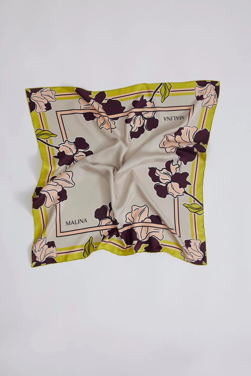 Vacker sidenscarf. Kan användas i håret, runt halsen och den är även tillräckligt stor för att knytas runt som en topp, var kreativ!