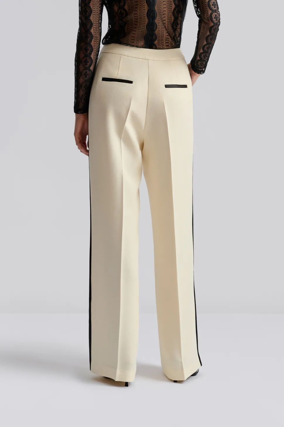 Smokingbyxor med pressveck och fickor i bak.