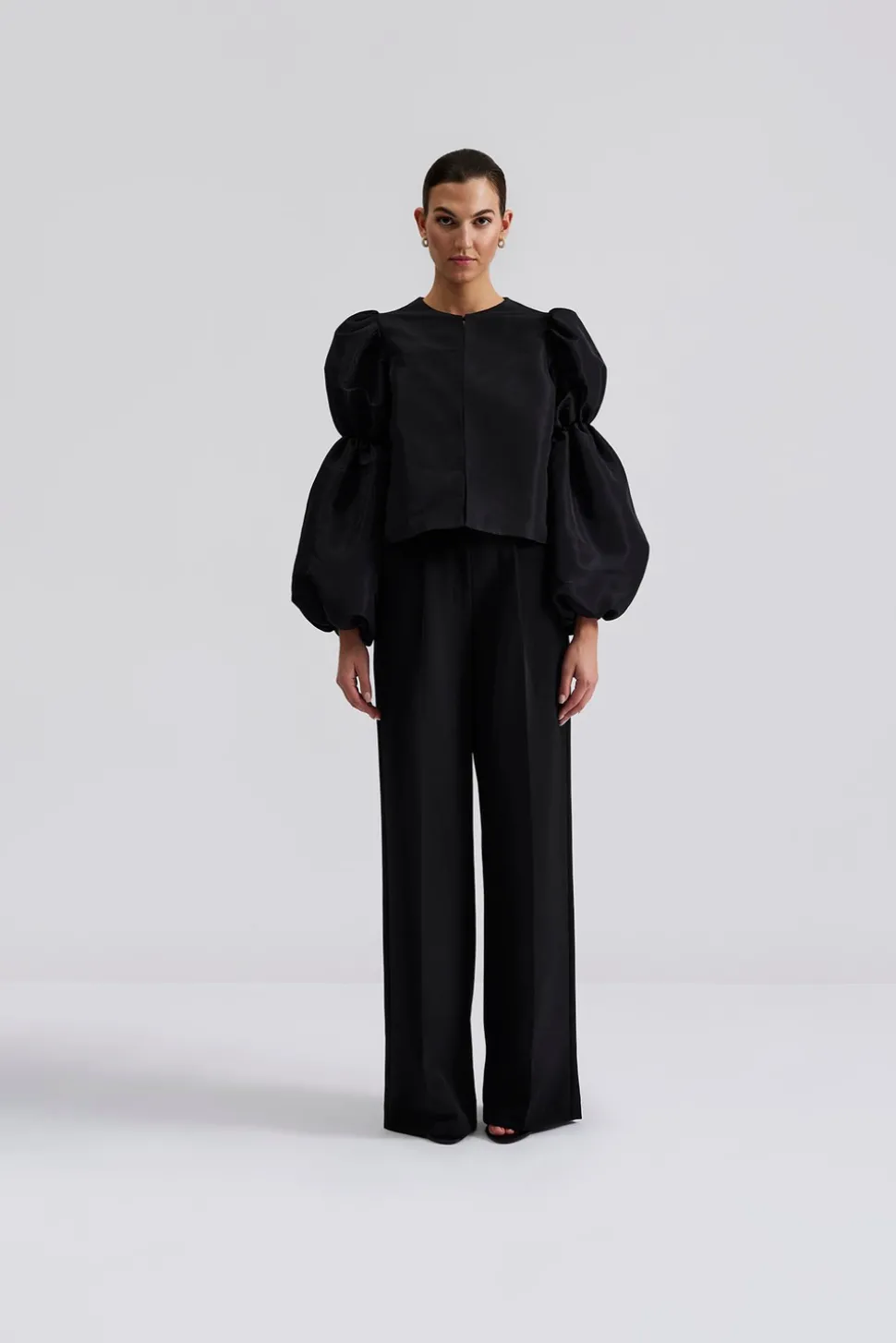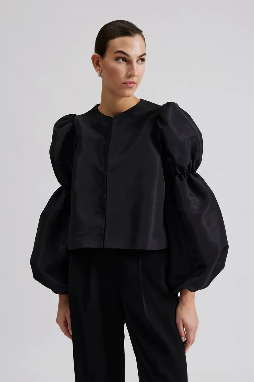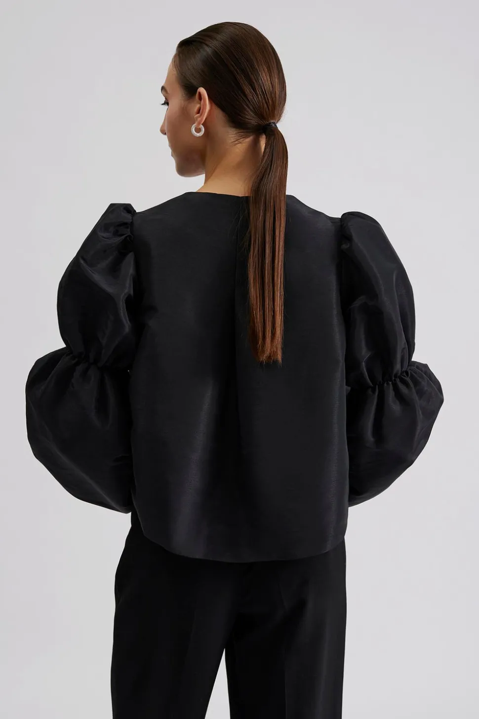 Långärmad blus med dubbelpuffärm med resår i ärmarna.