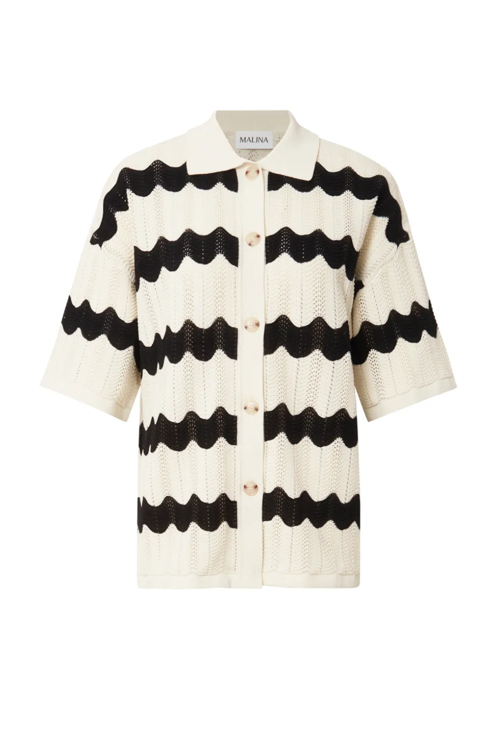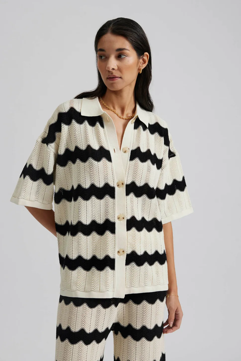 Kortärmad, oversized stickad tröja med knappar.