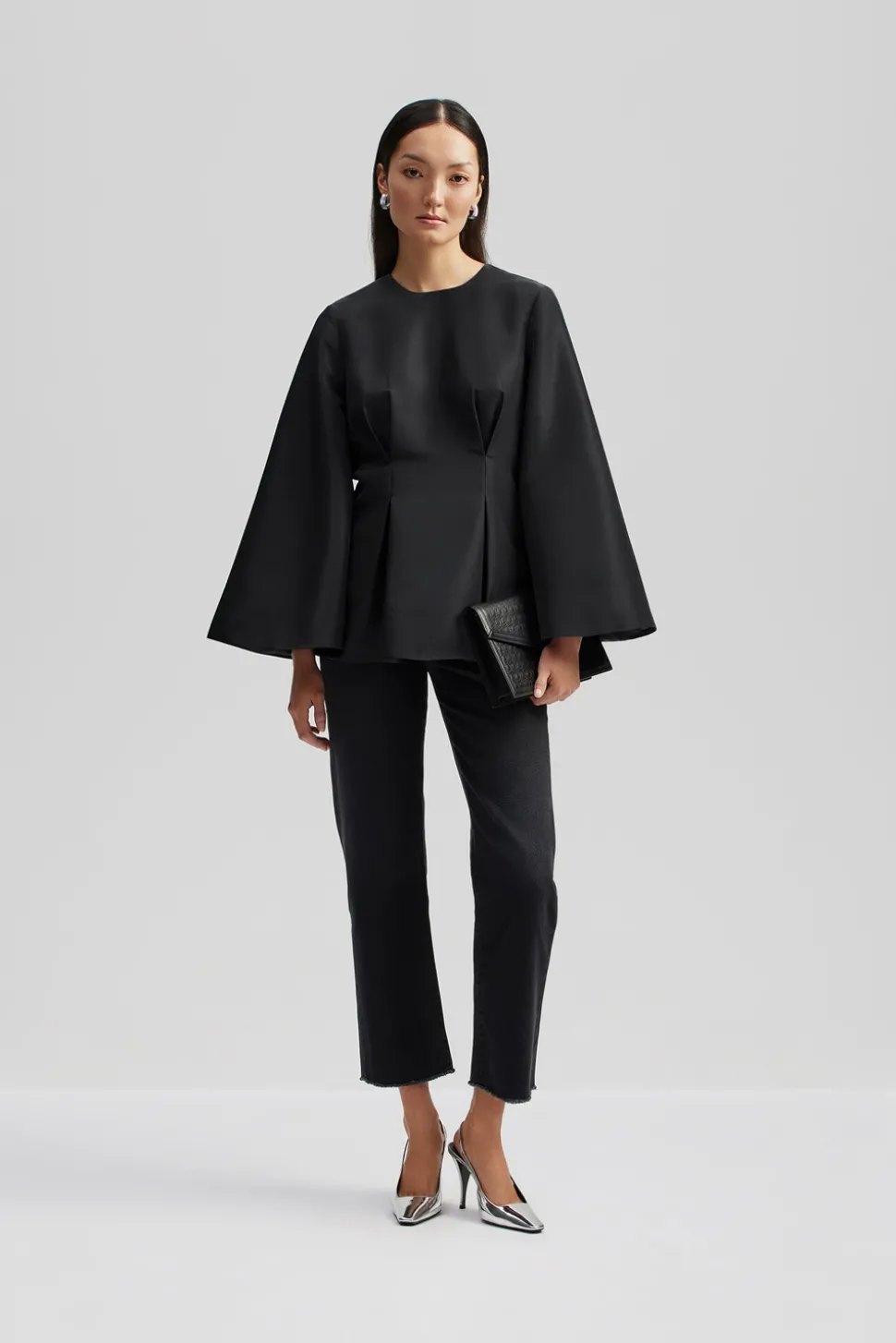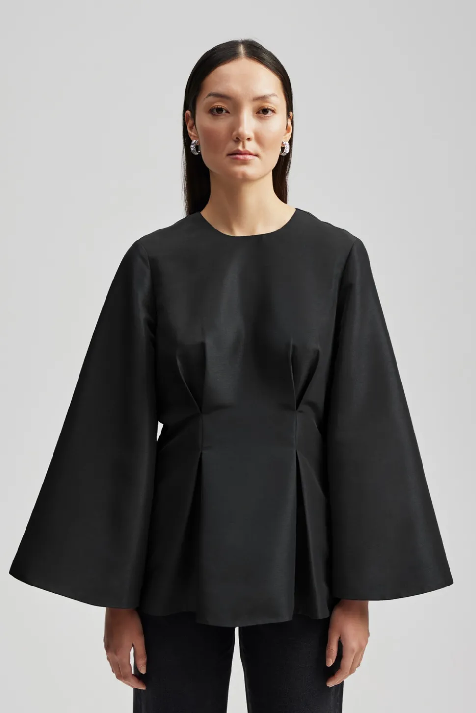 Peplum blus med långa vida ärmar.