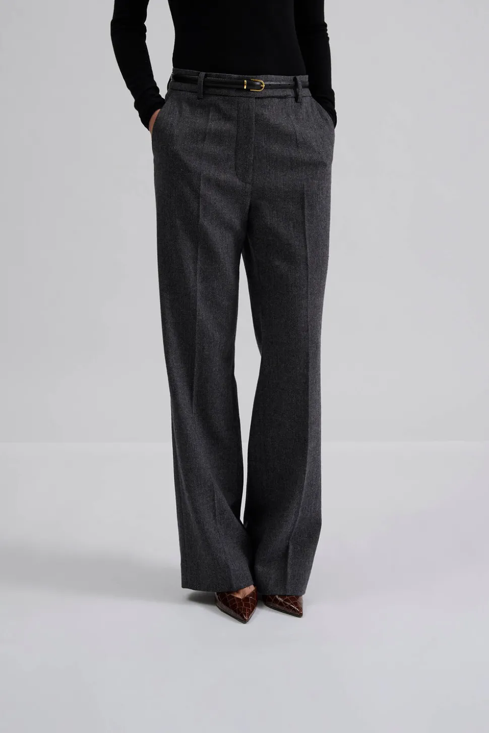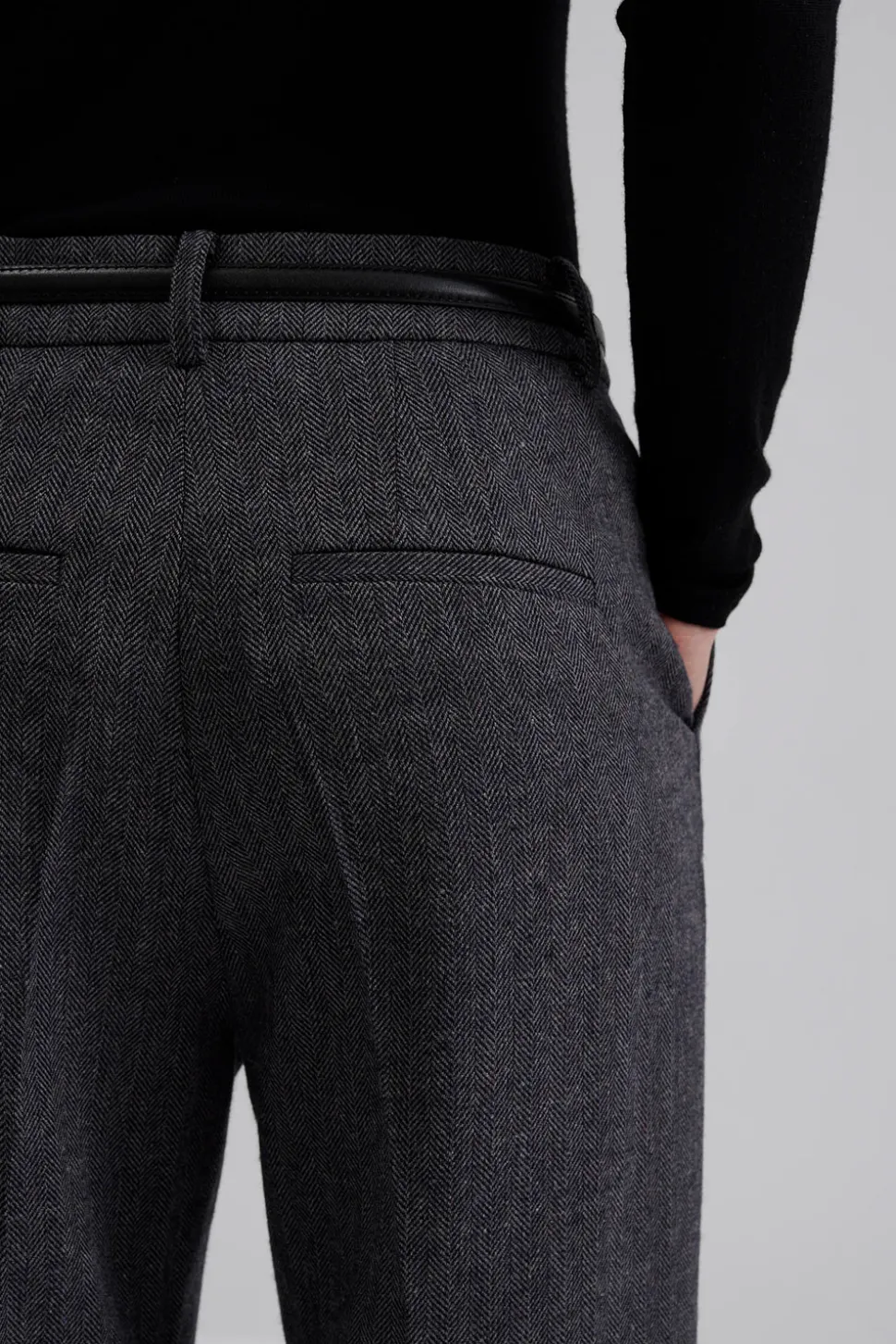 Raka fiskbensmönstrade byxor med fickor