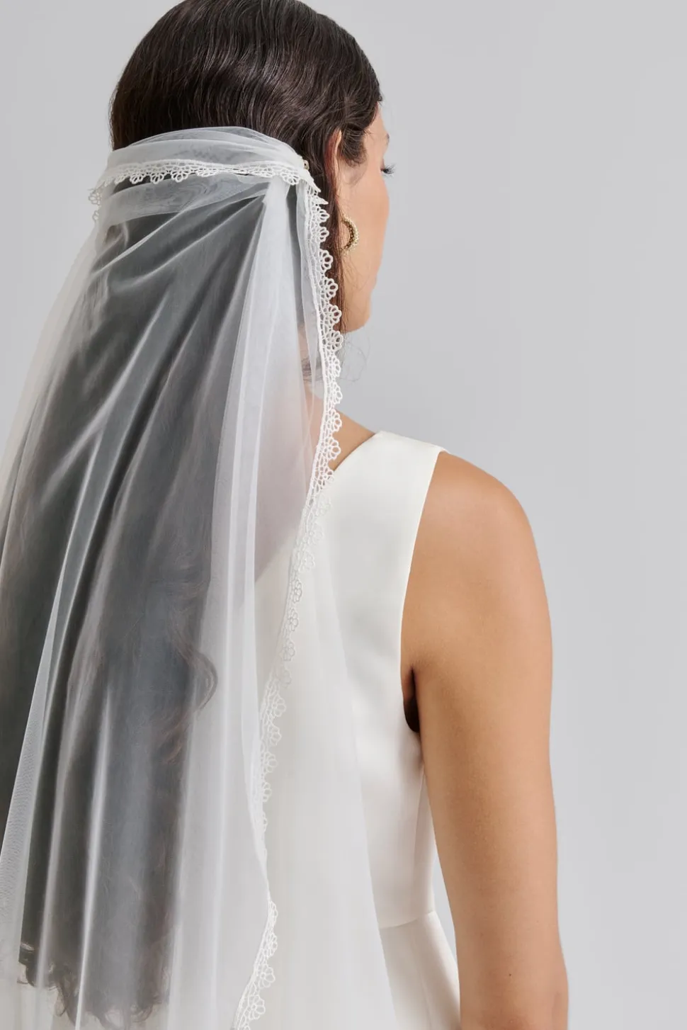 Spetsslöja med bohemisk känsla, går att fästa med två kammar för att rama in din frisyr.