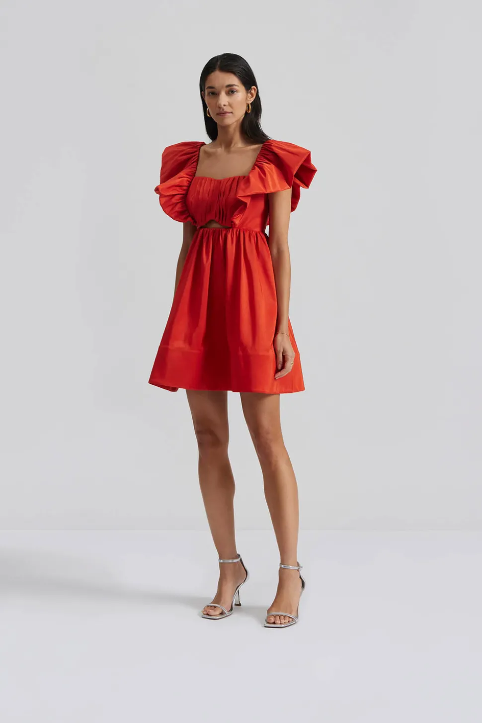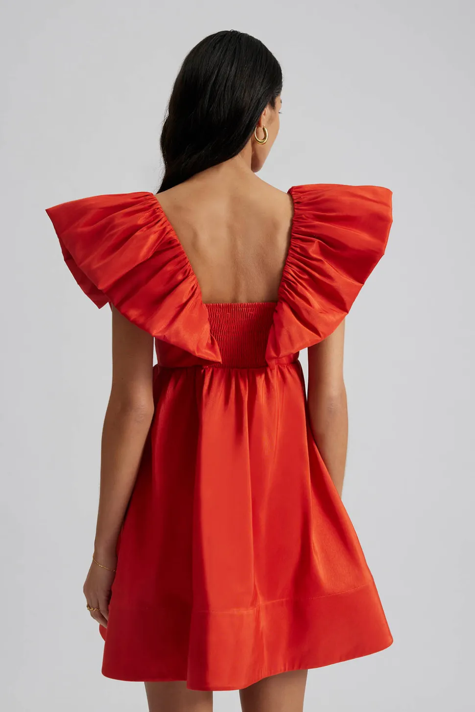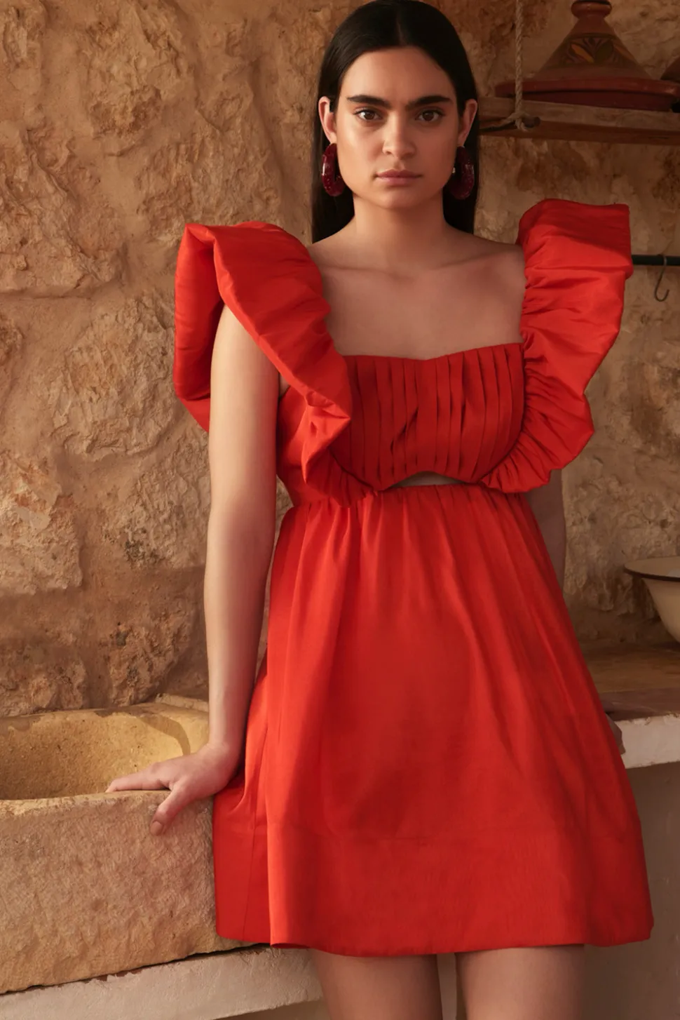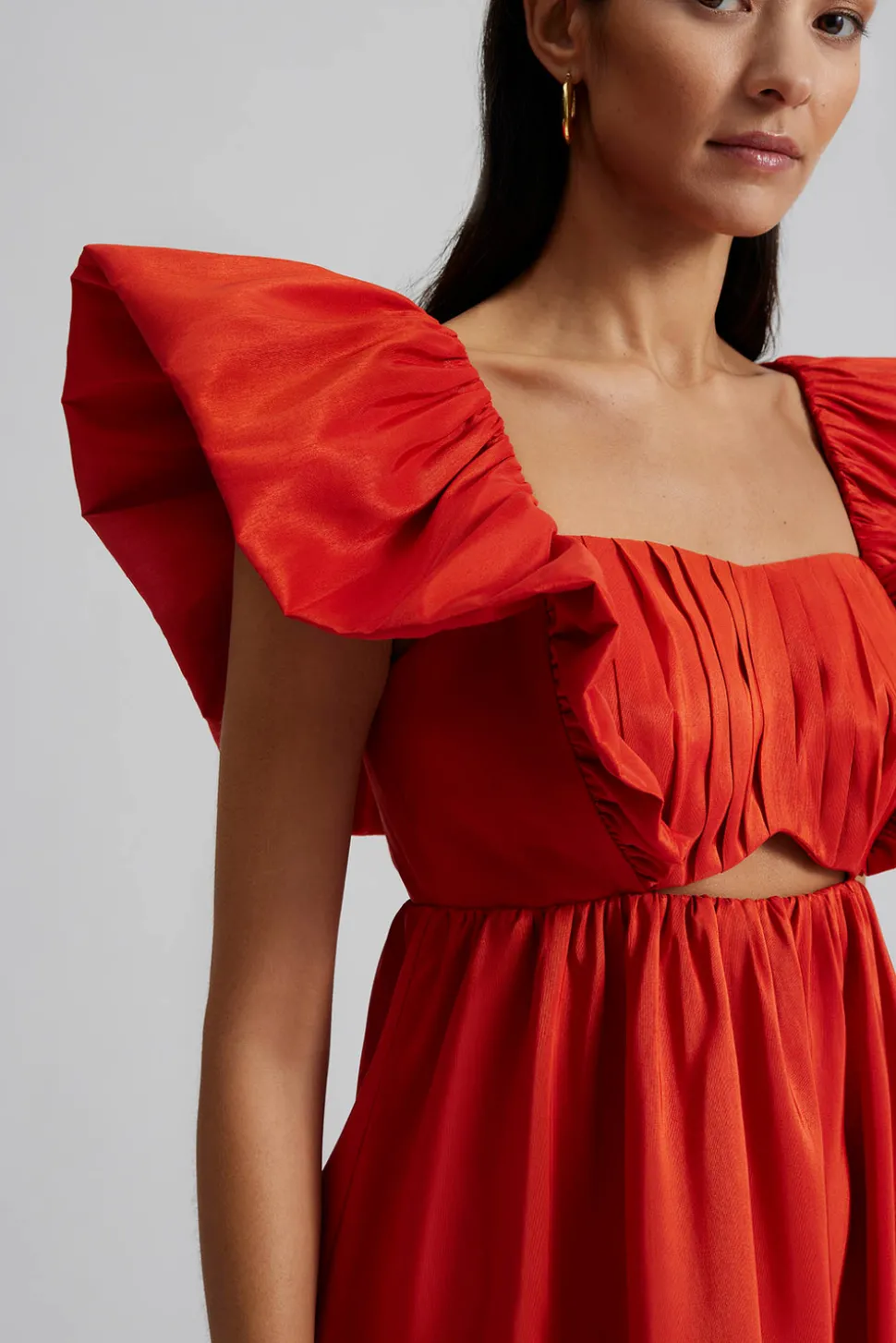 Miniklänning med plissering och volanger.