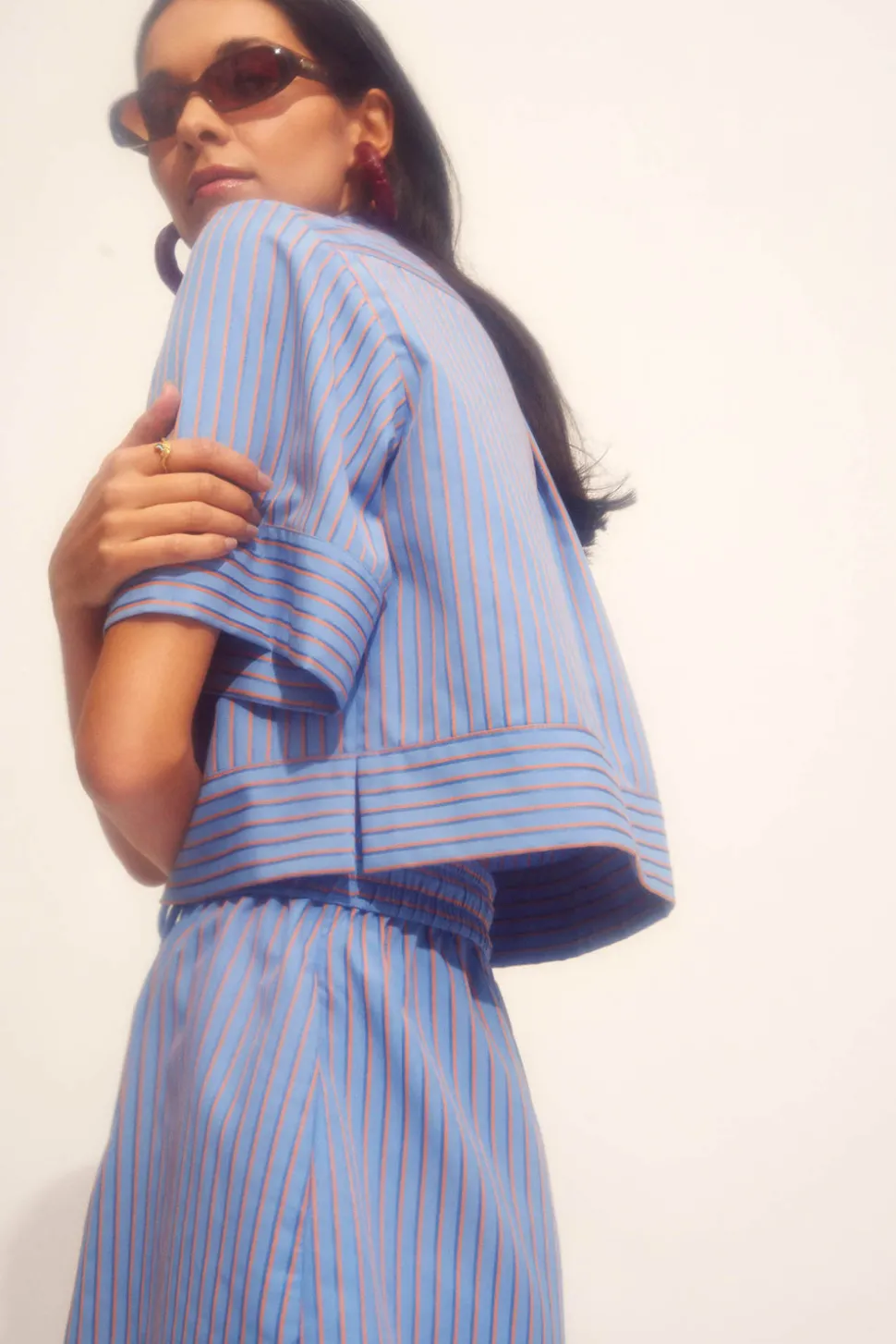 Randiga högmidjade shorts.