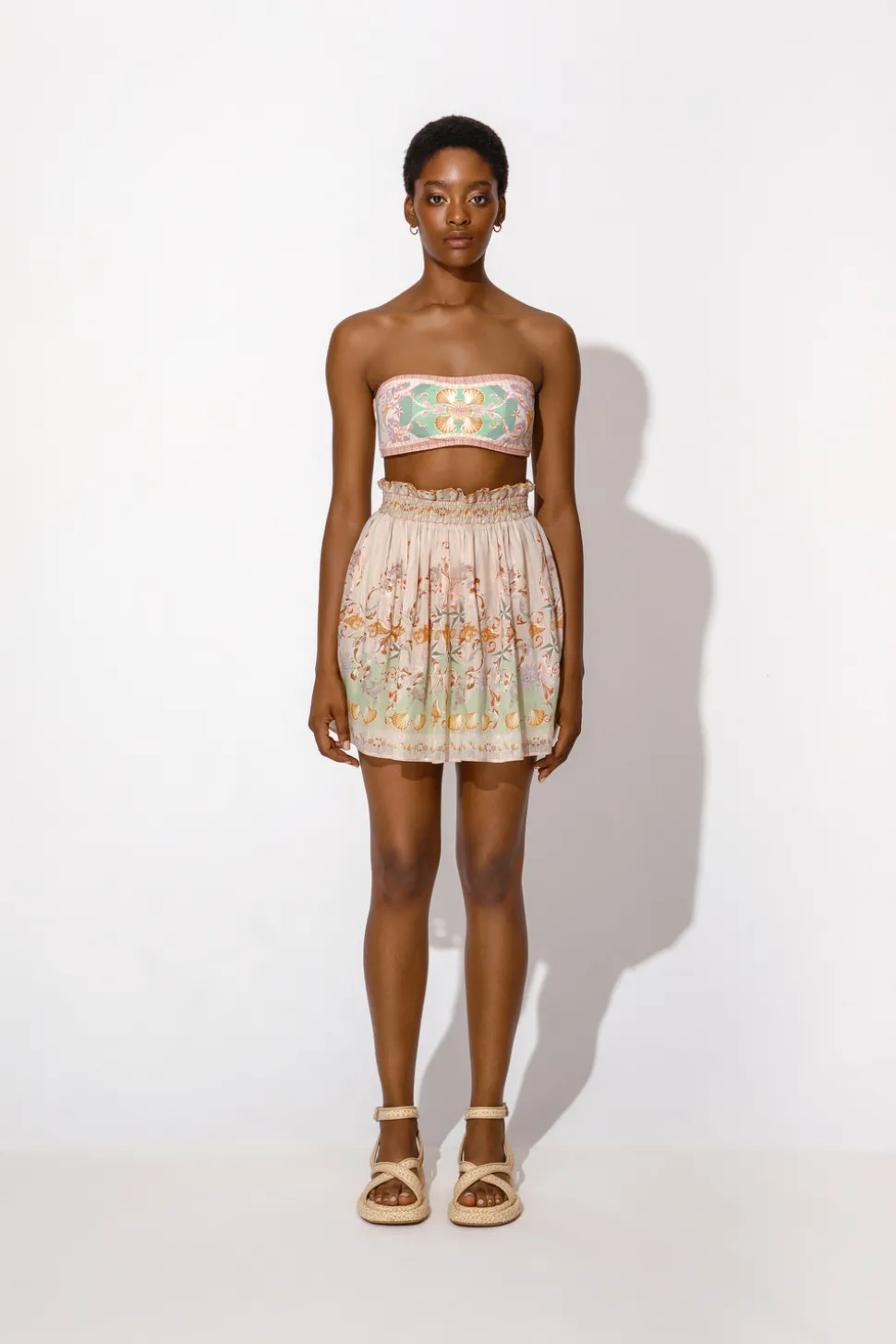 Mönstrad bandeau bikinitopp med avtagbara axelband, skapar oändliga stylingalternativ.