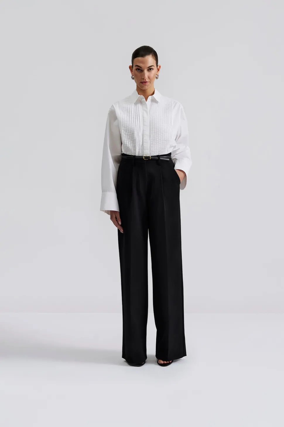 Skjorta med plisserad detalj och vida ärmar