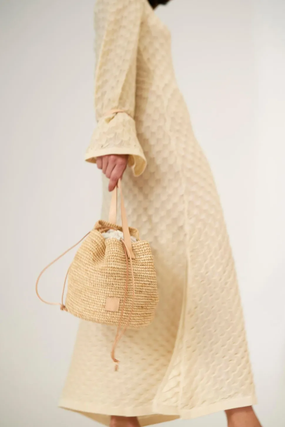 • Skal: 100% Raffia Foder: 100% Bomull Detaljer: 100% Läder