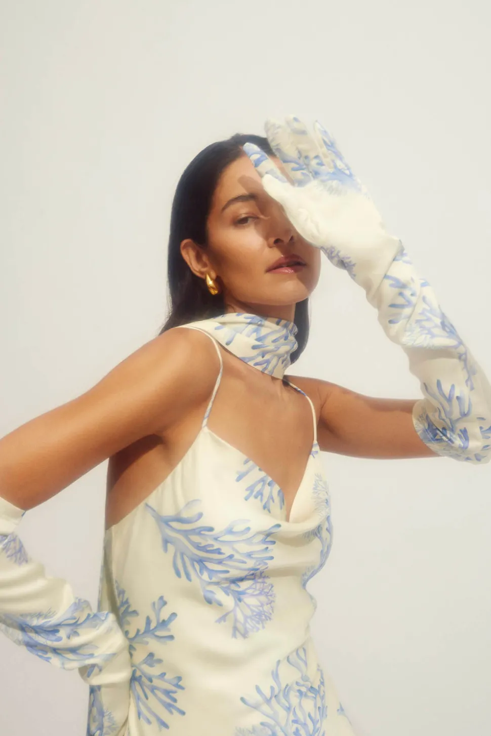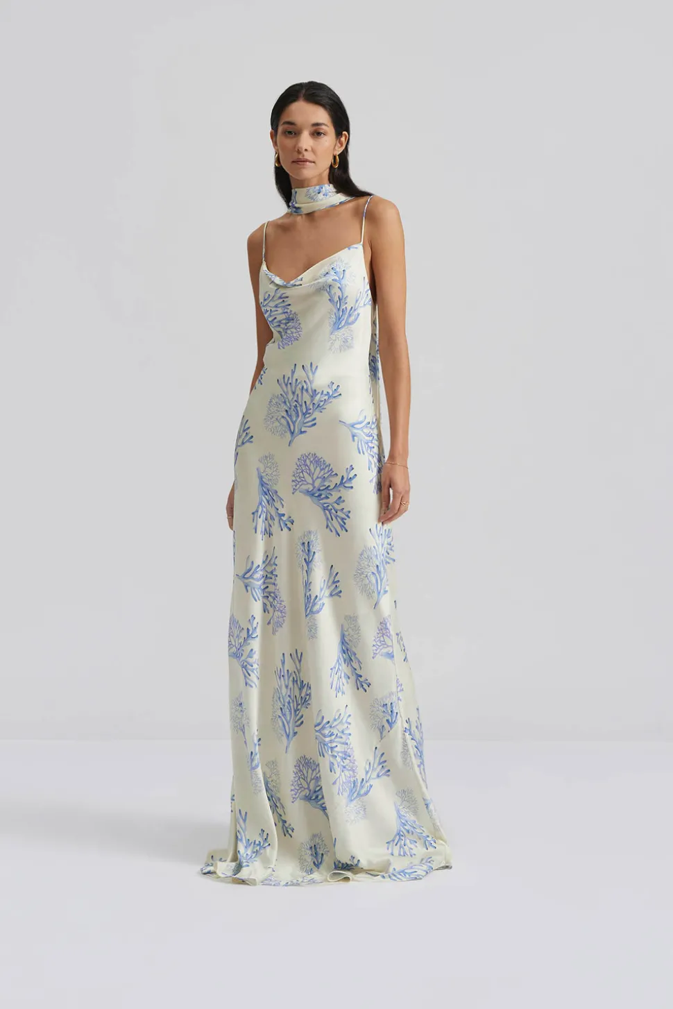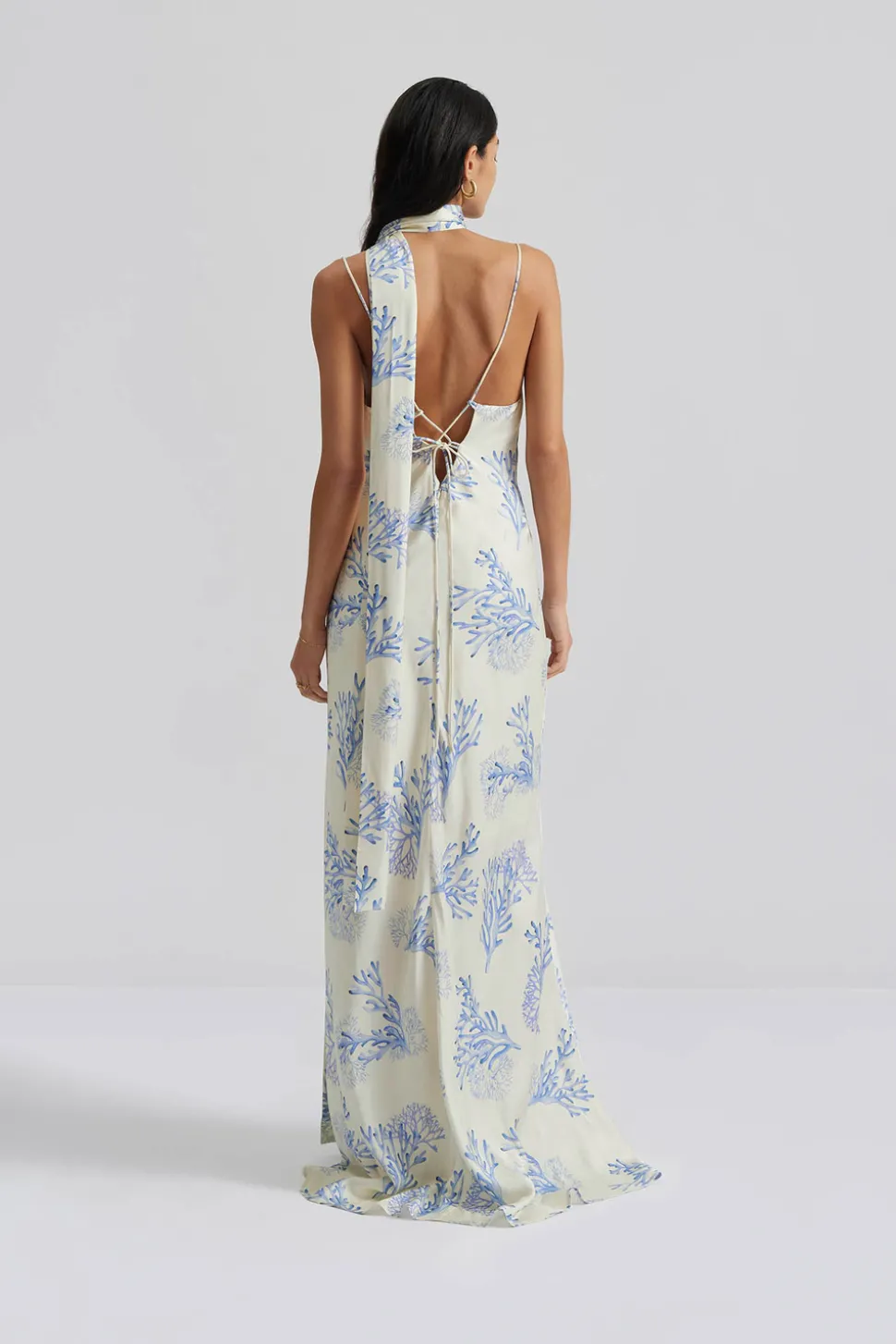 Mönstrad slip maxiklänning i satin som knyts i ryggen, kommer med matchande scarf.
