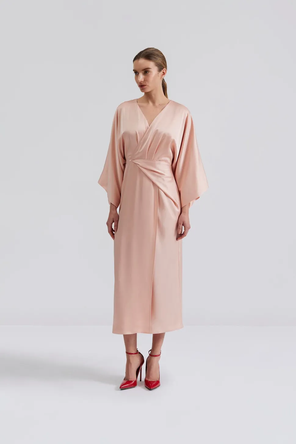 Midiklänning i omlott med detalj