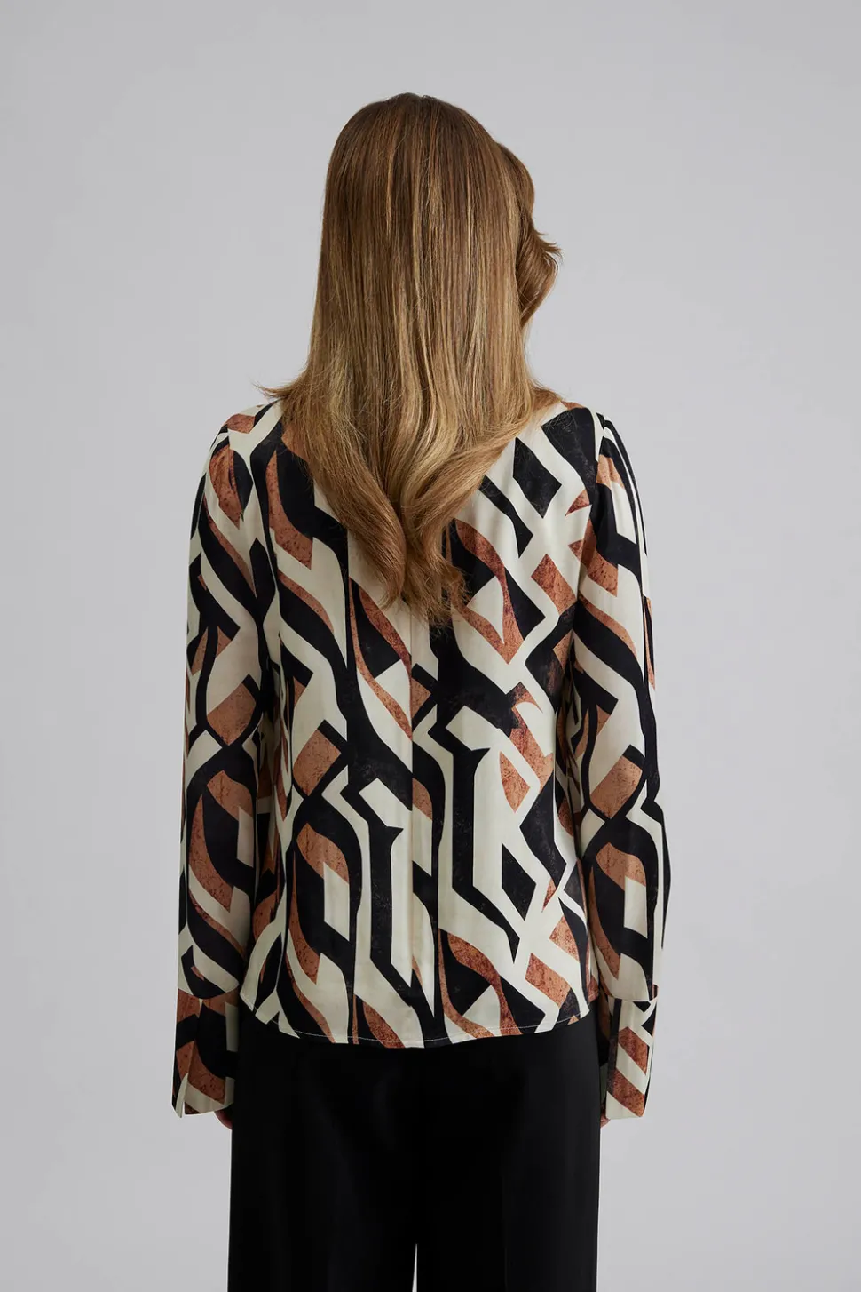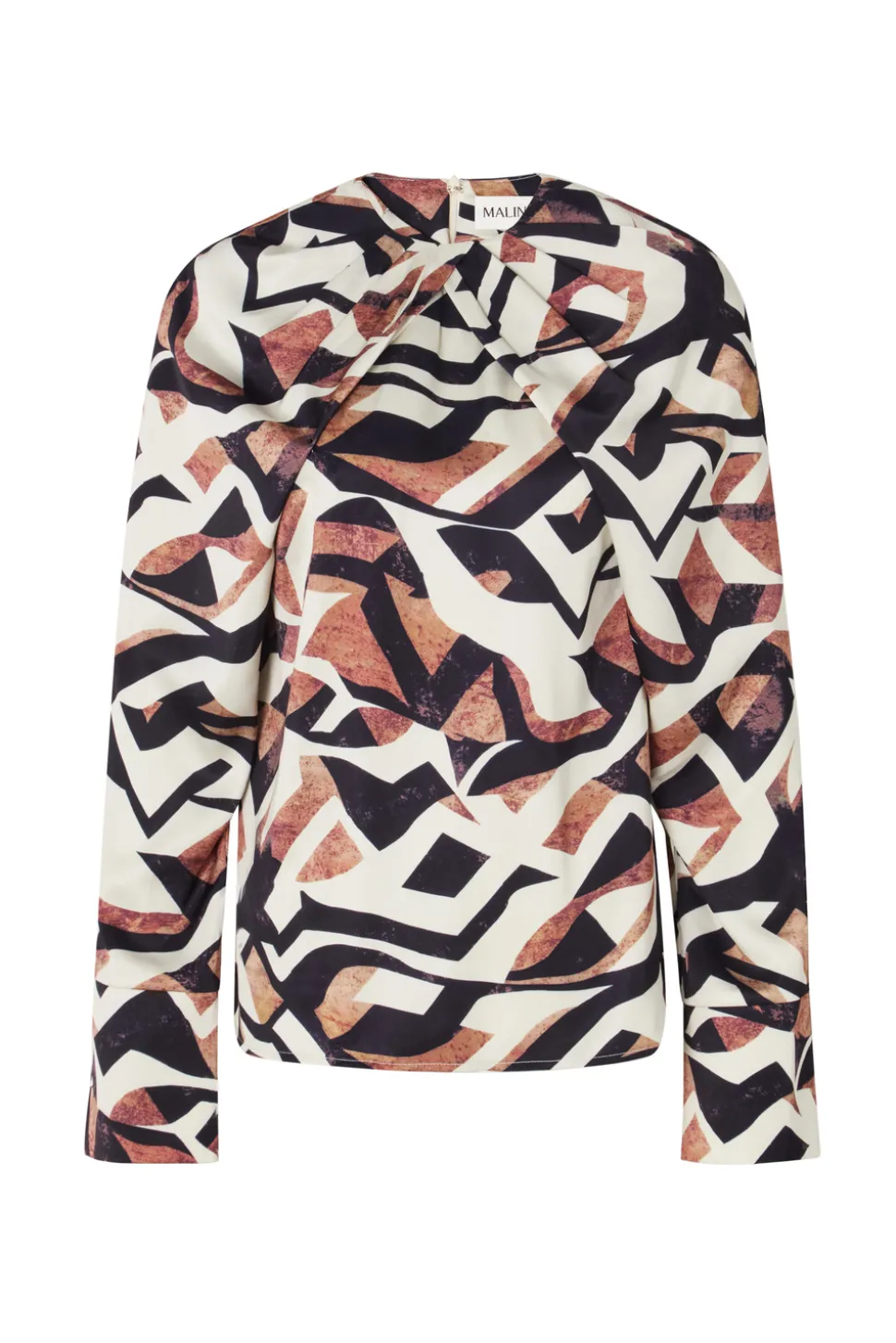 Blus i lös passform med veckad halsringning och långa ärmar.