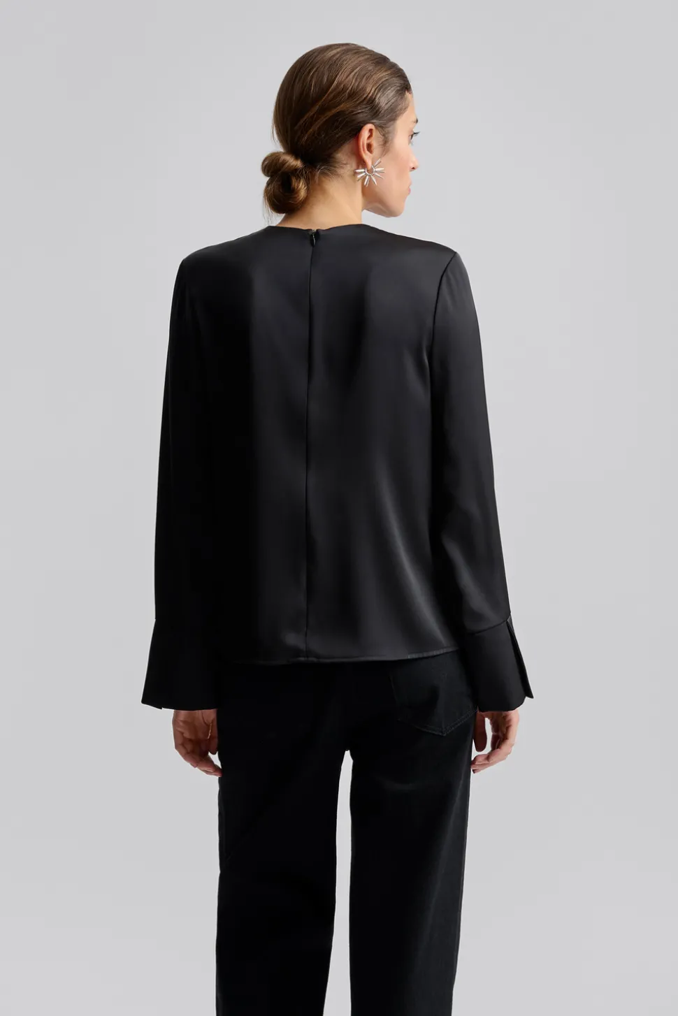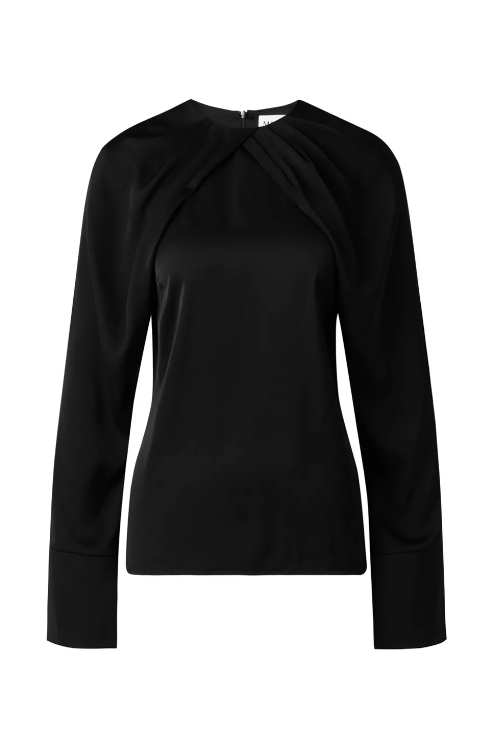 Blus i lös passform med veckad halsringning och långa ärmar.