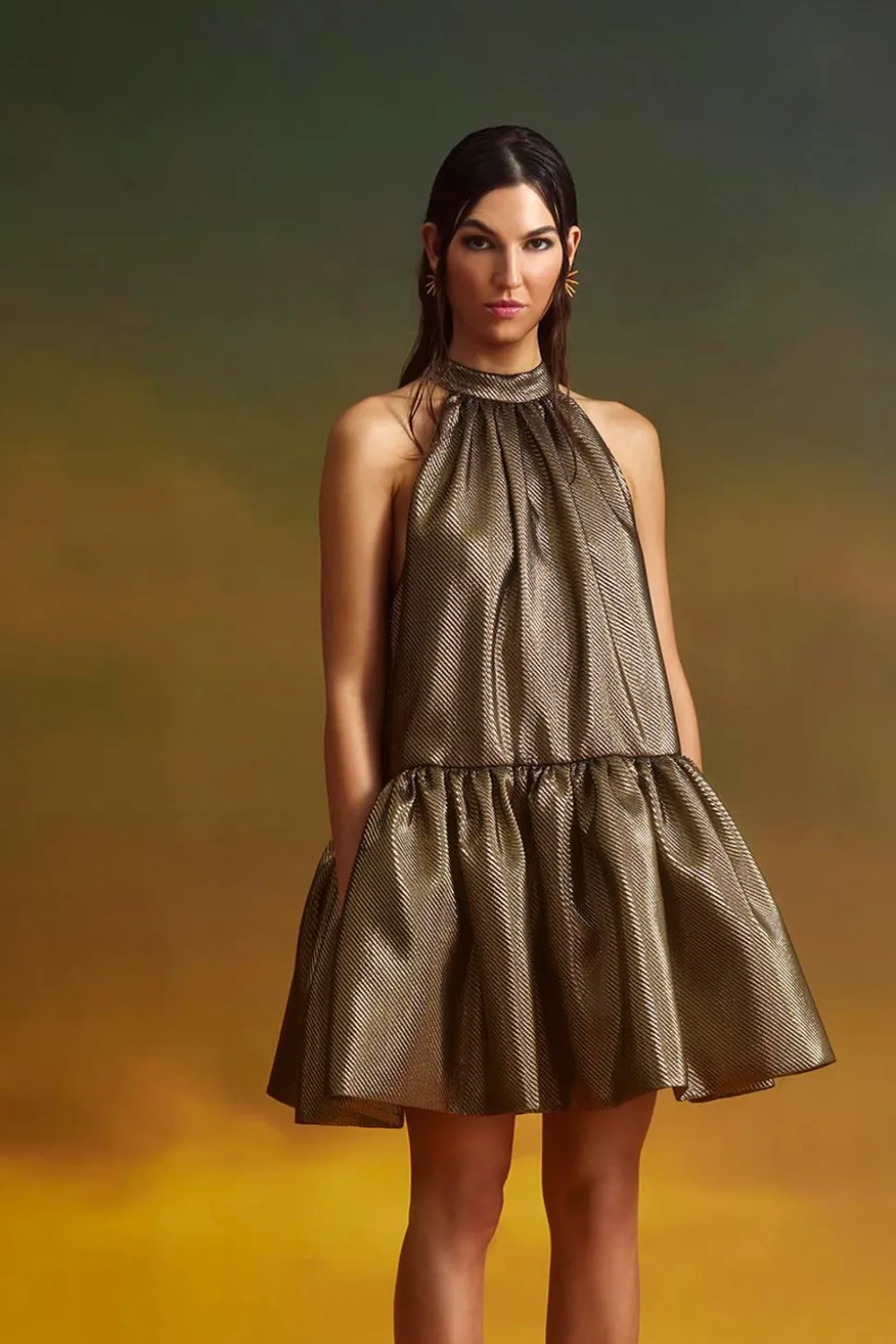 Miniklänning i halterneck med puffdetalj