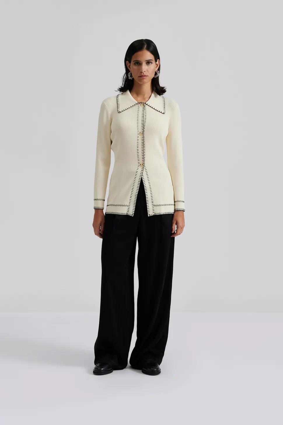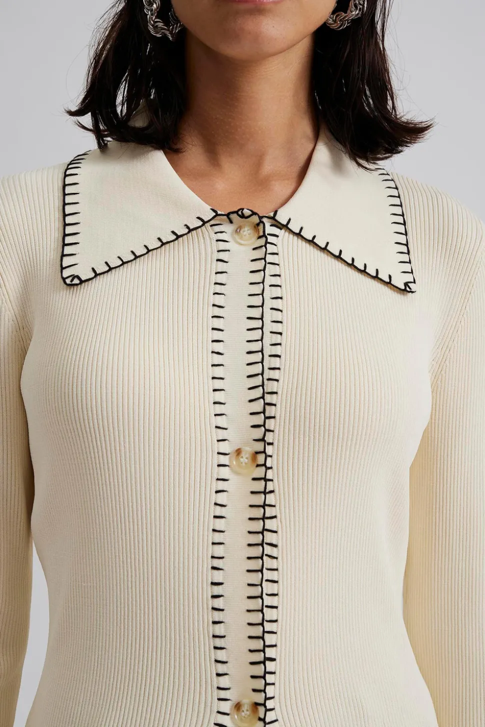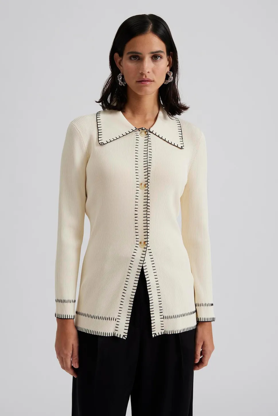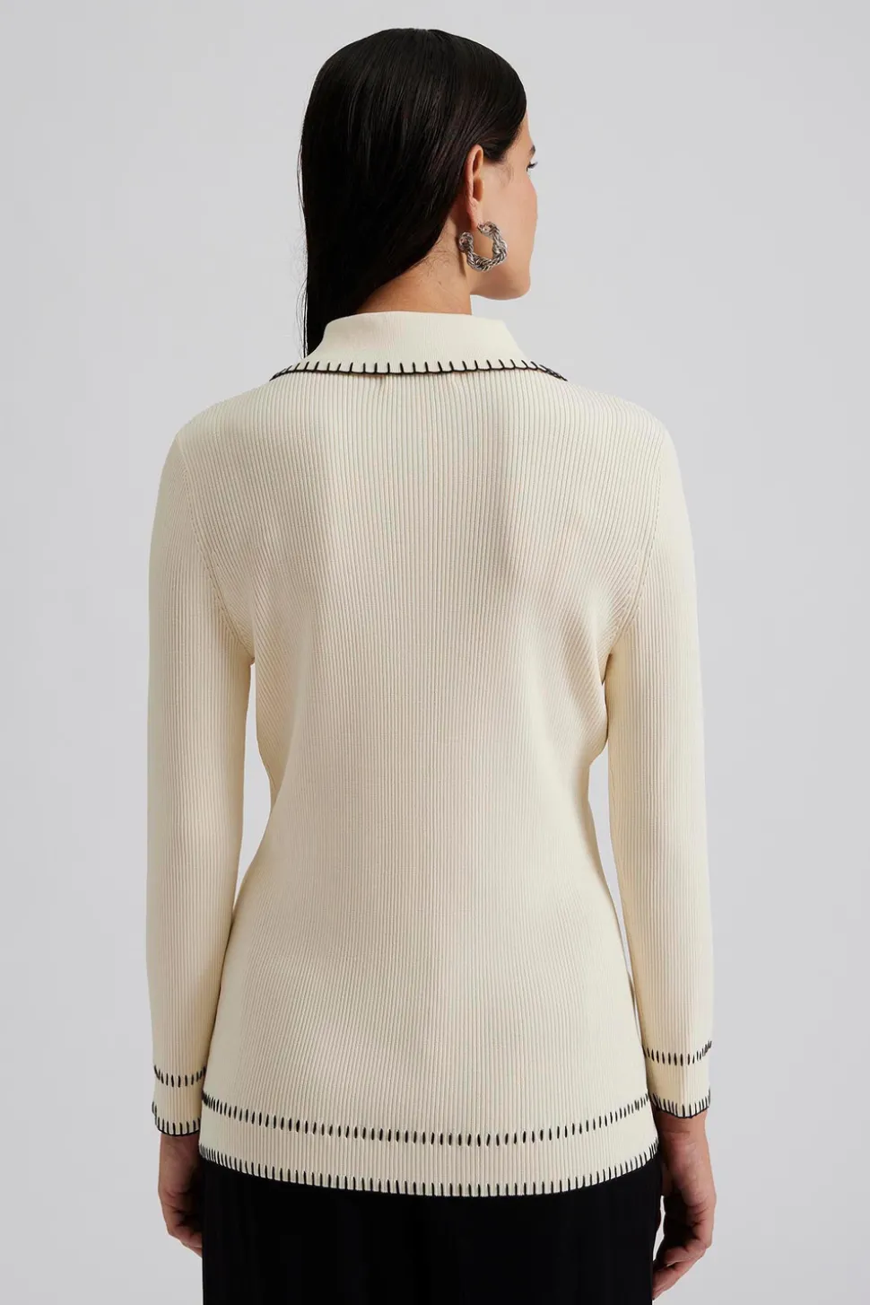 Långärmad stickad topp med krage.