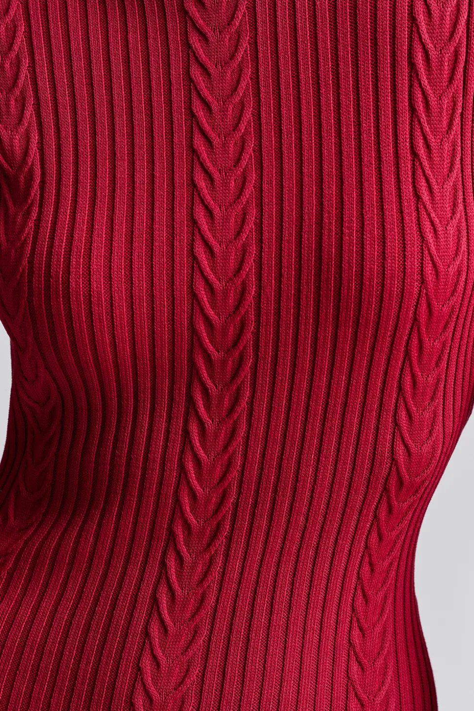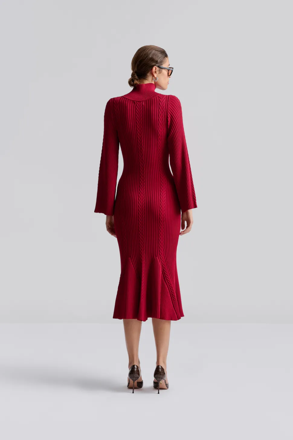 Kabelstickad maxiklänning med polo krage och långa vida ärmar.