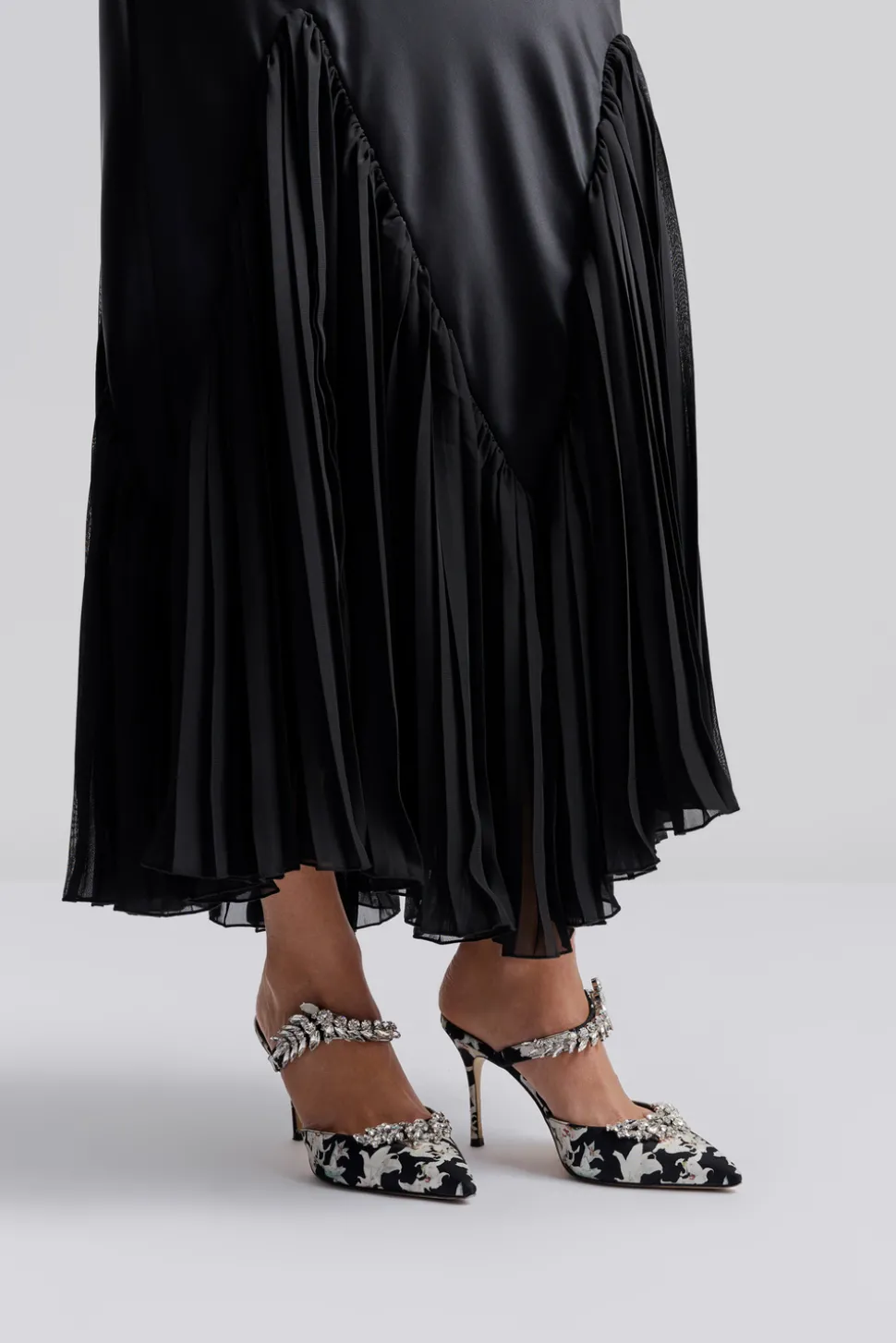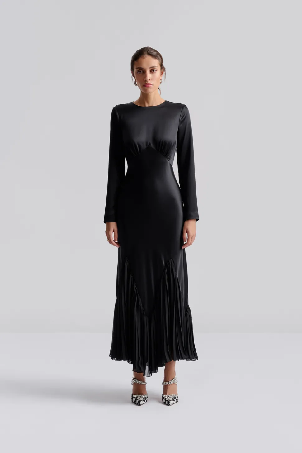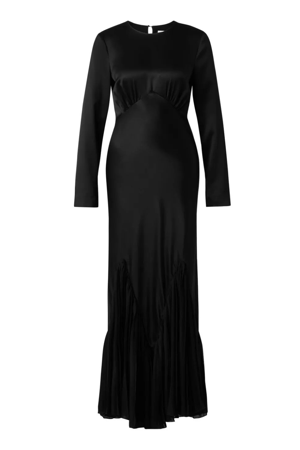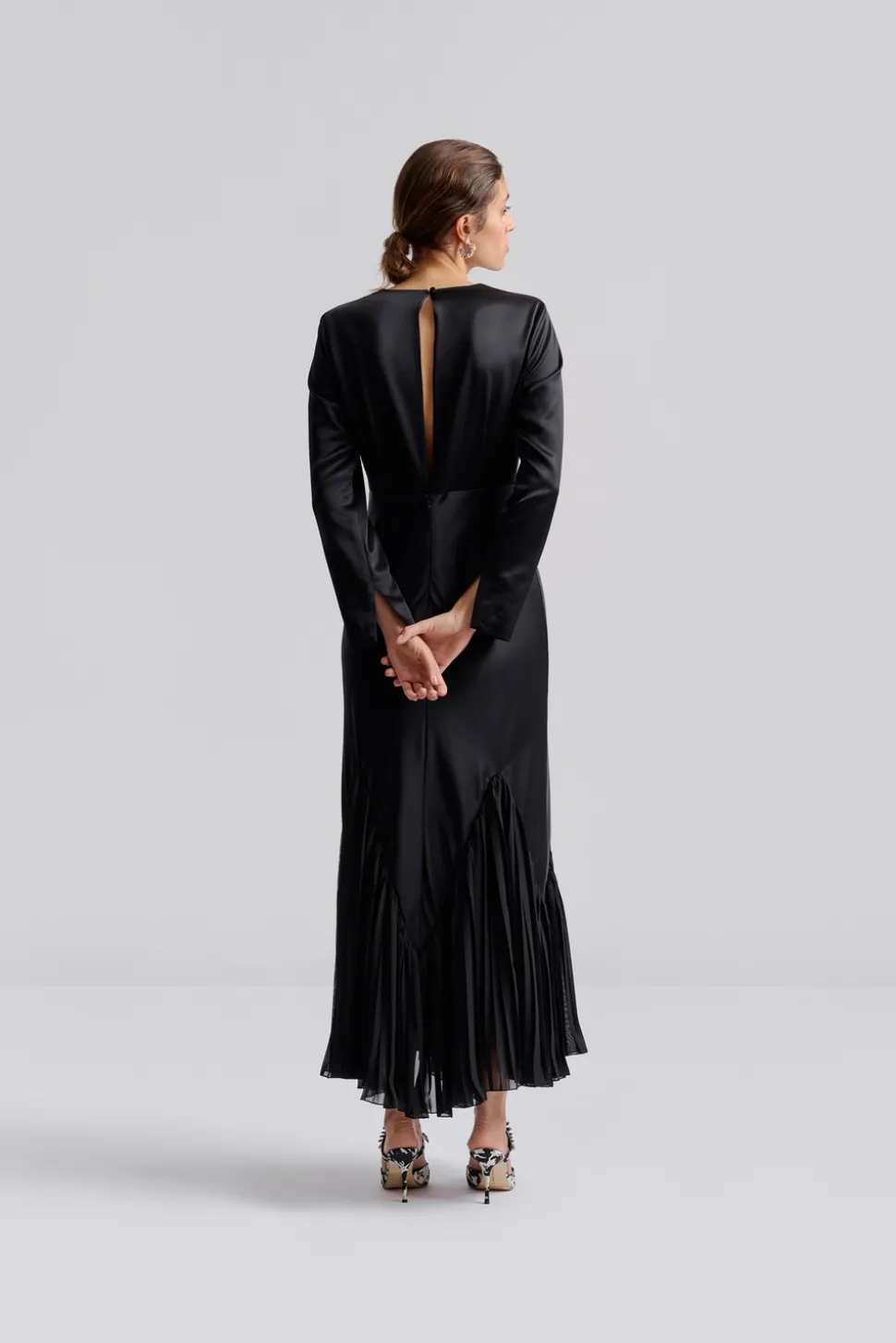 Långärmad maxiklänning med plisseringar
