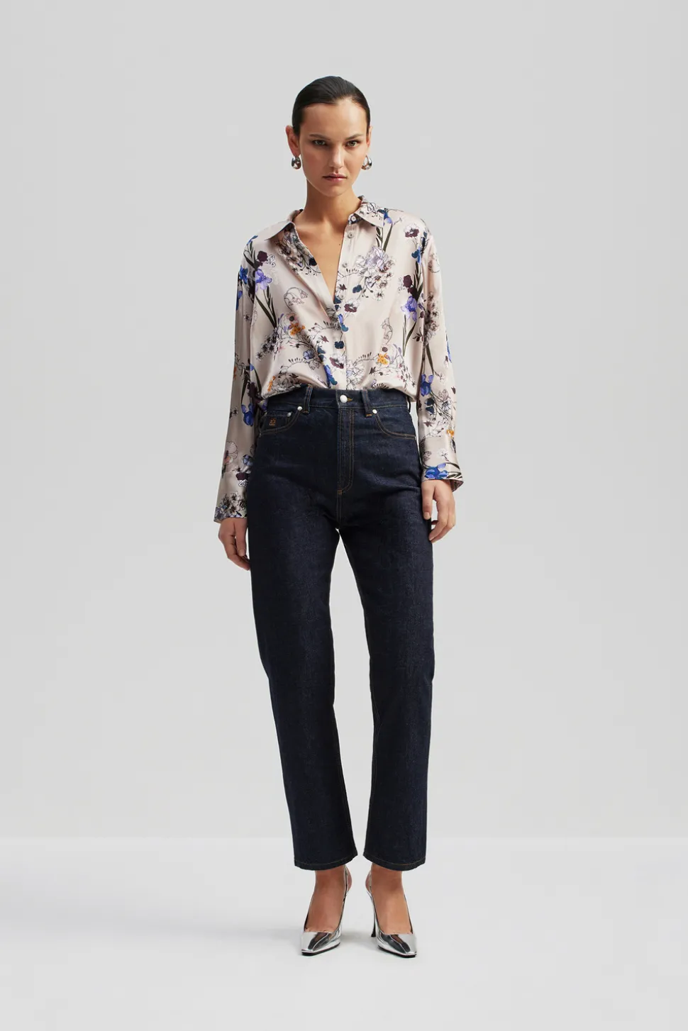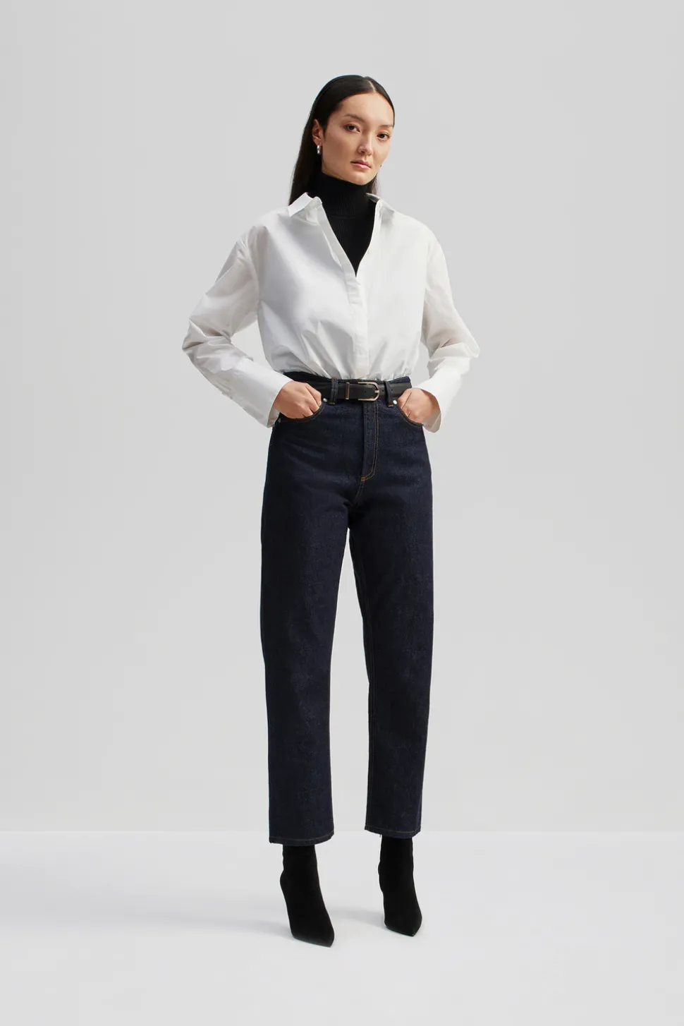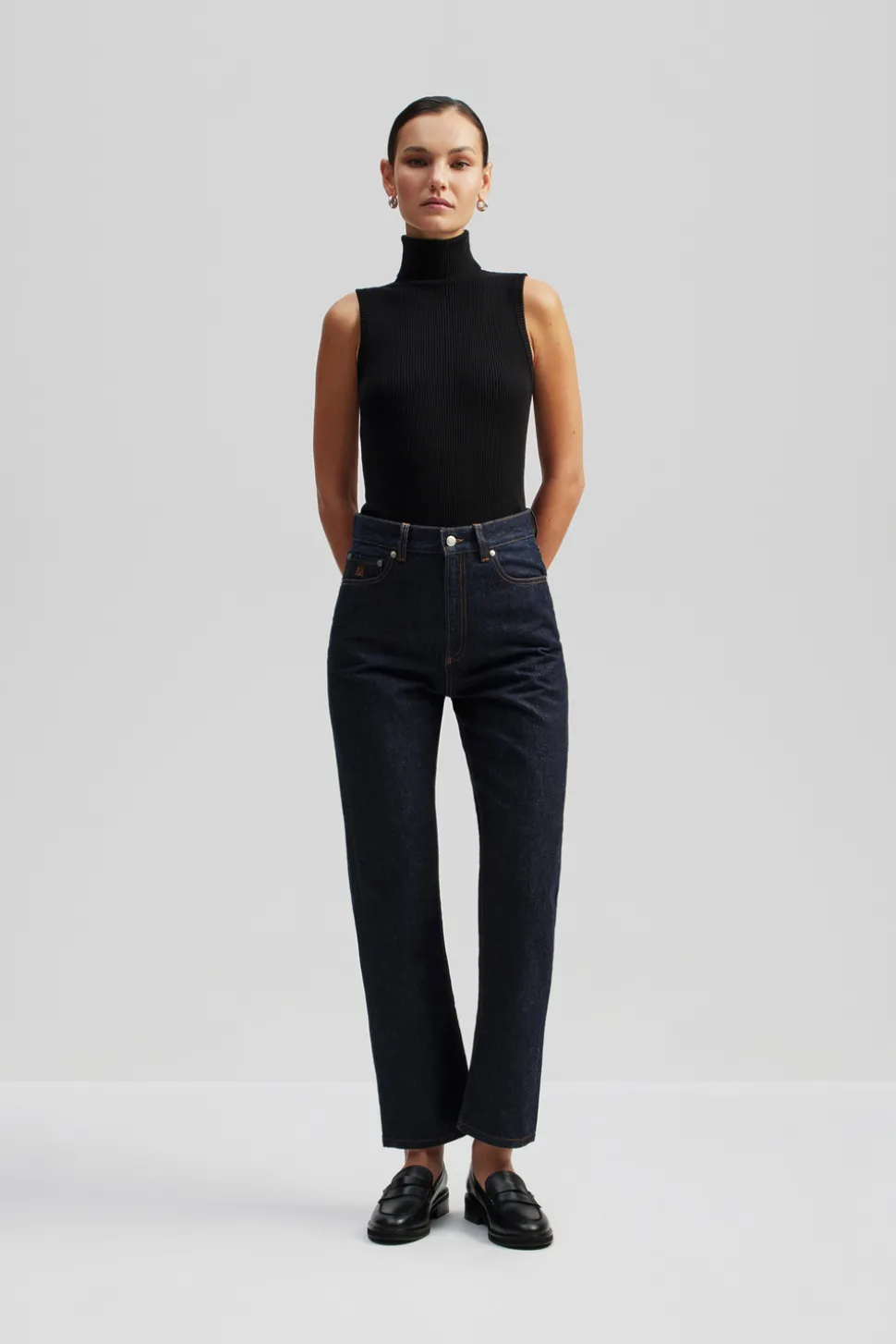 Höga raka cropped jeans med två fickor fram och bak.