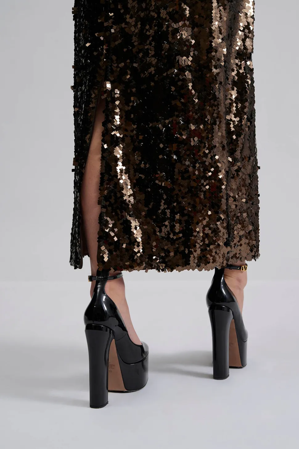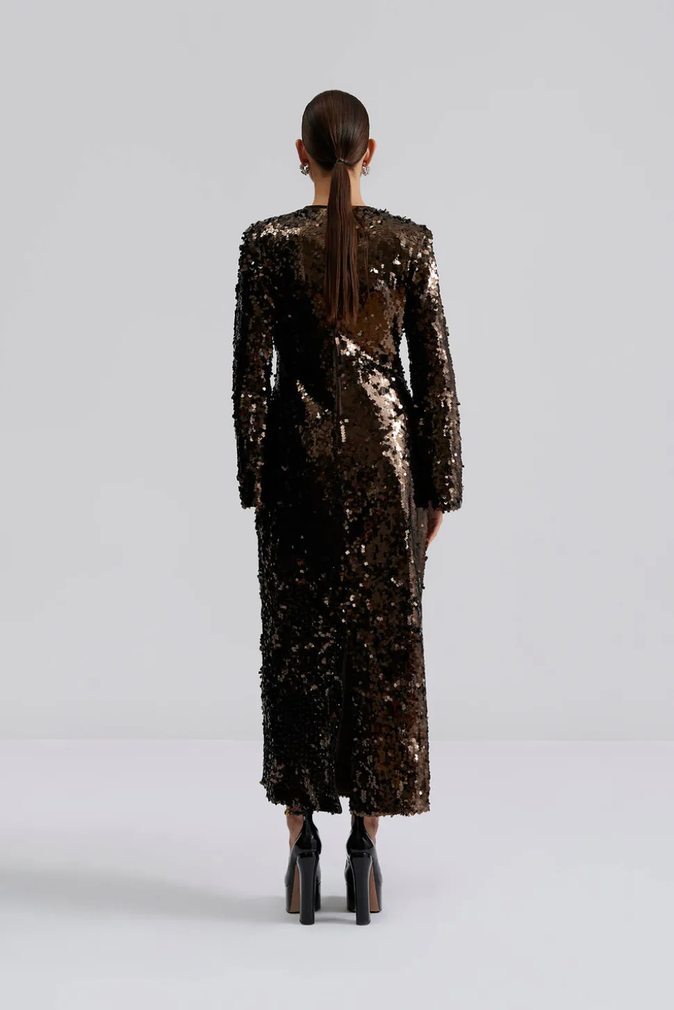 Maxiklänning med paljetter och öppen detalj