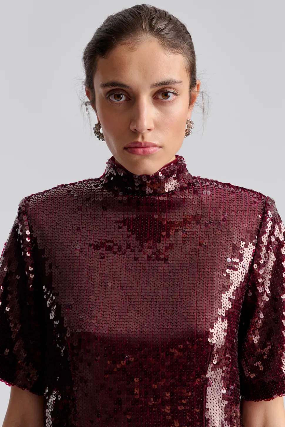 Paljettopp med kort ärm och halvpolo