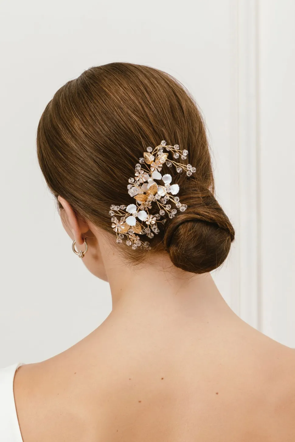 Ett hårsmycke utsmyckat med kristaller och blommor.