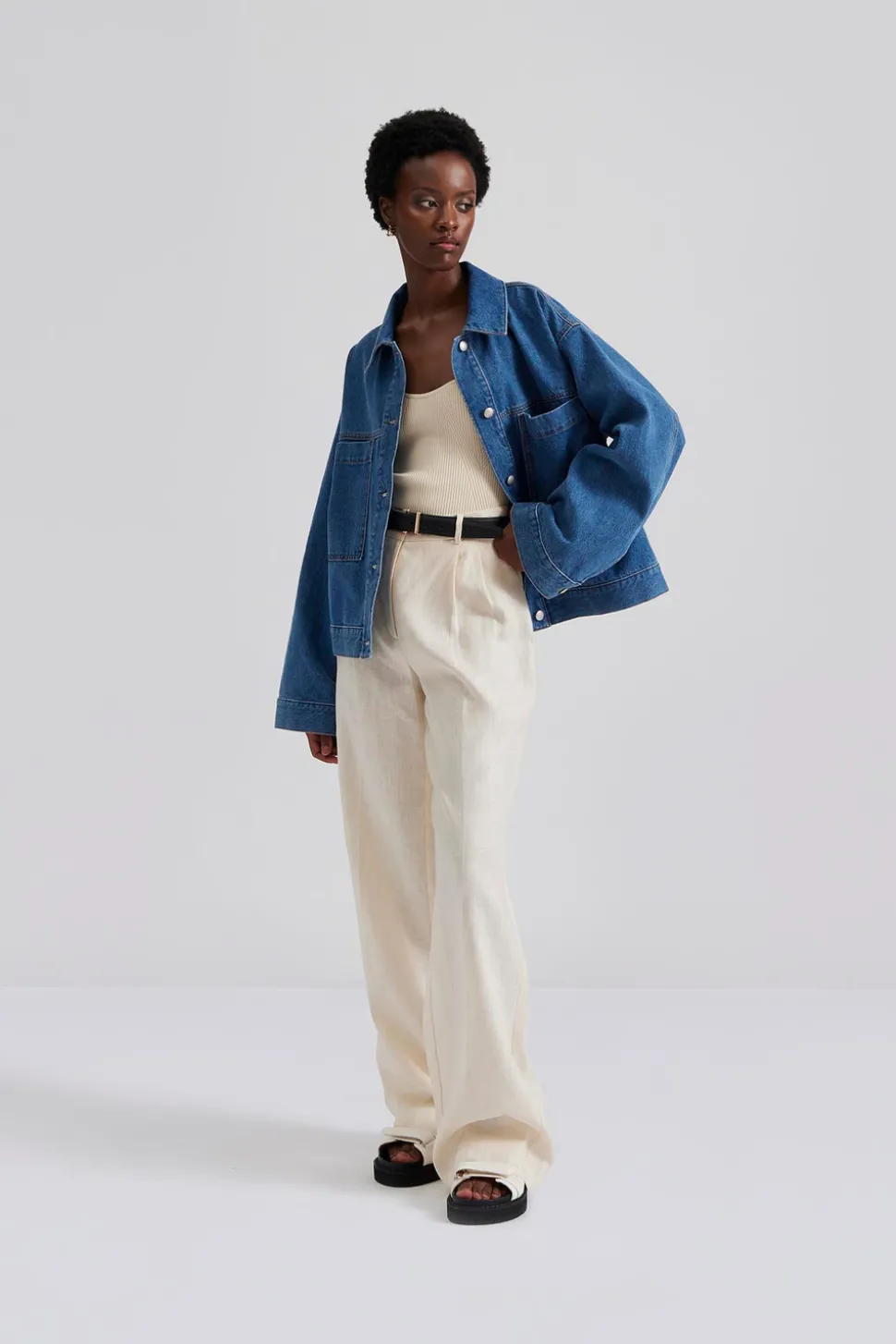 Jeansjacka med vid ärm samt knappar framtill och fickor.