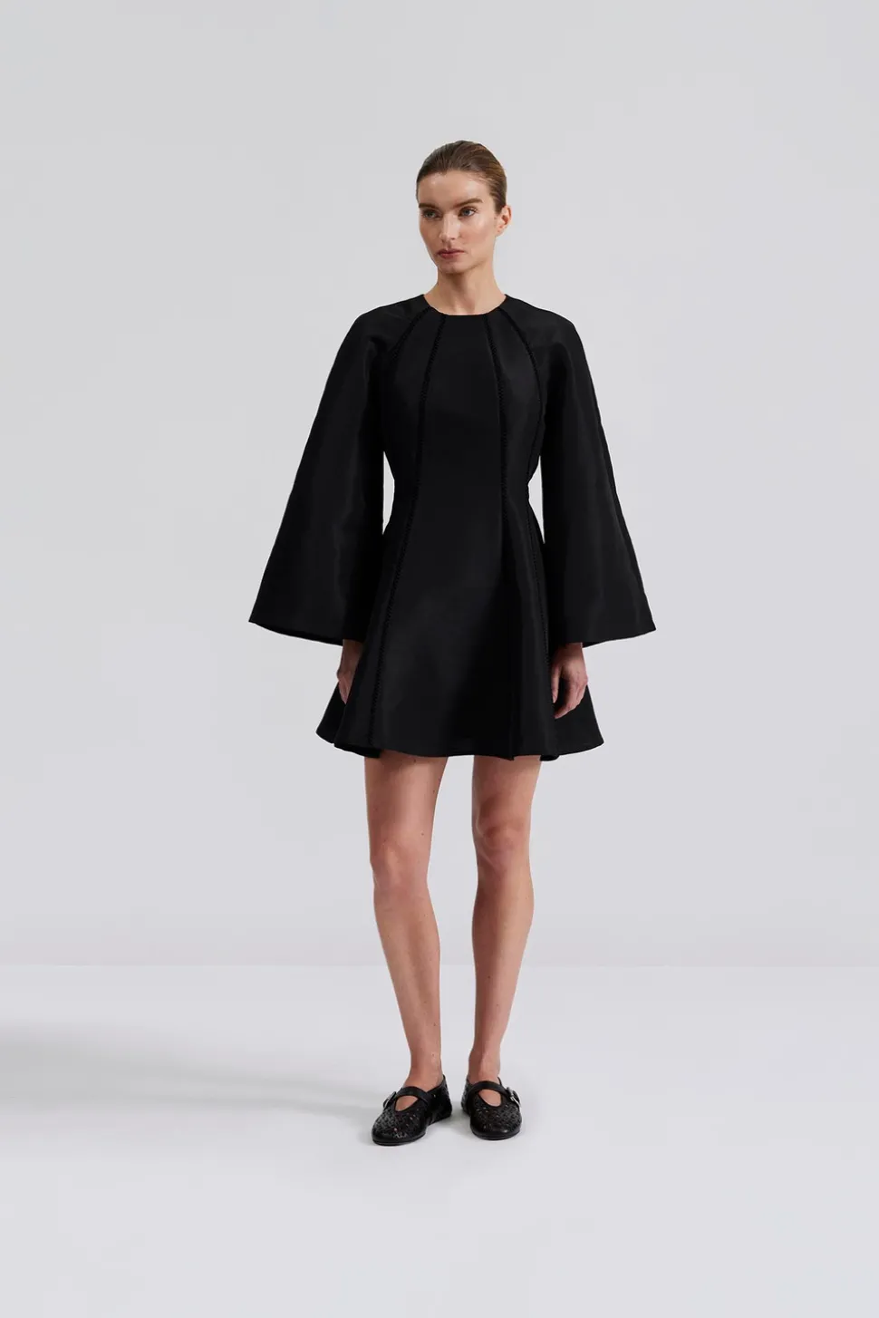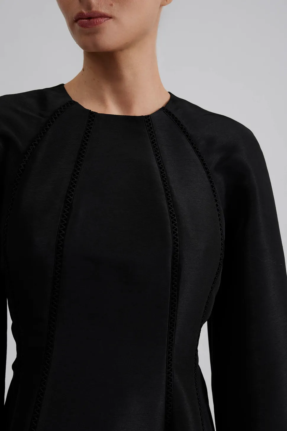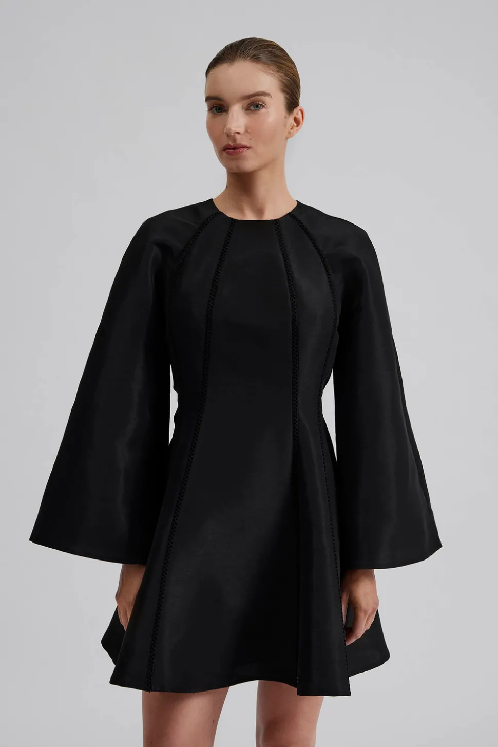 Långärmad mini klänning med detaljsömmar