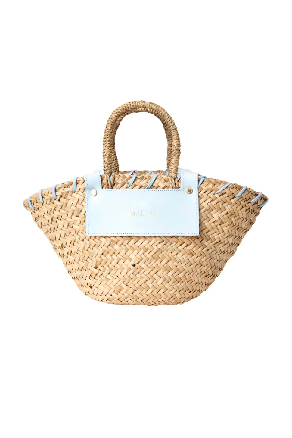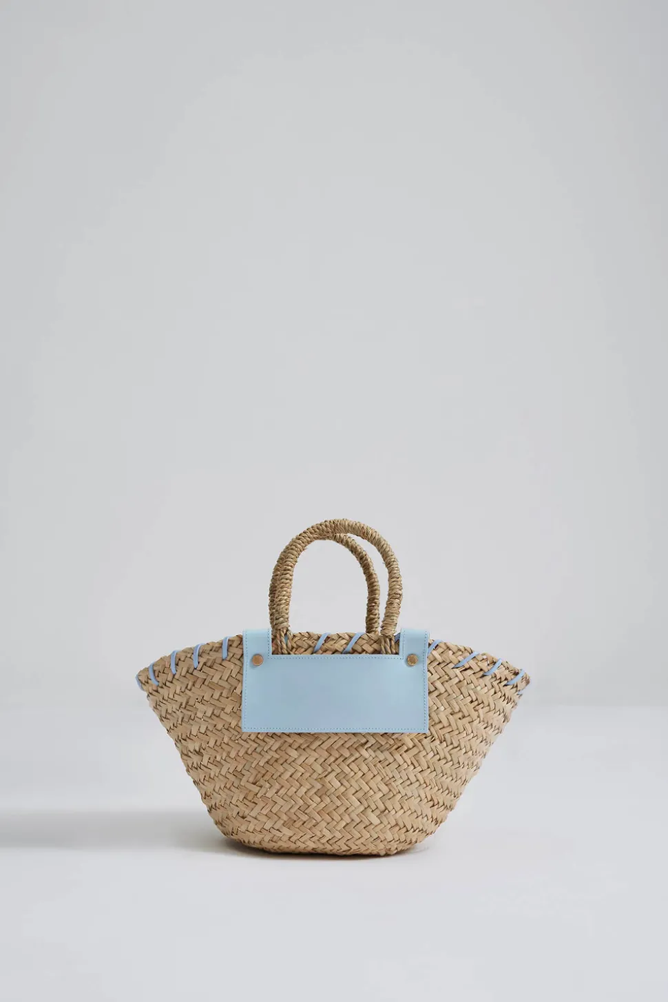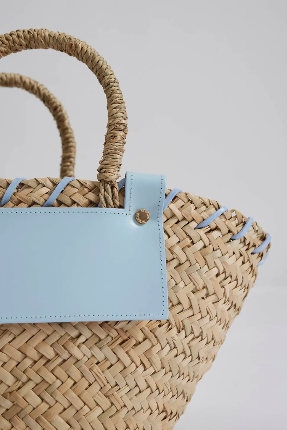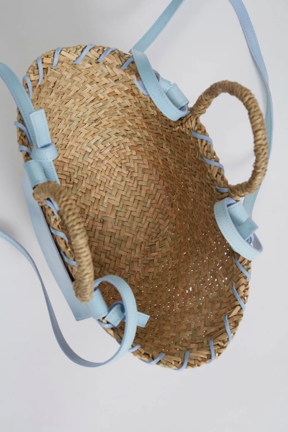 Stråväska med skinndetaljer och justerbara band som är avtagbara.
