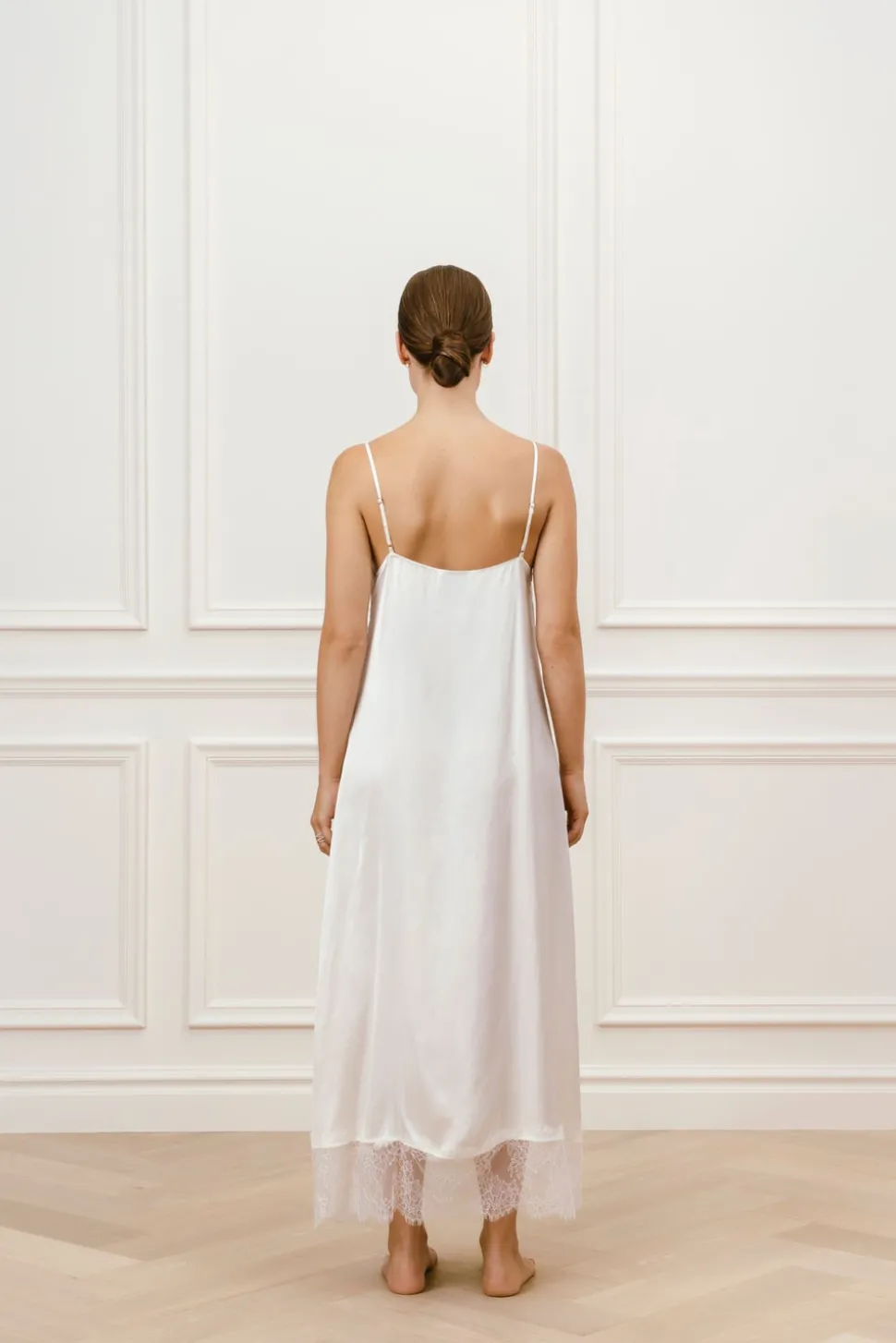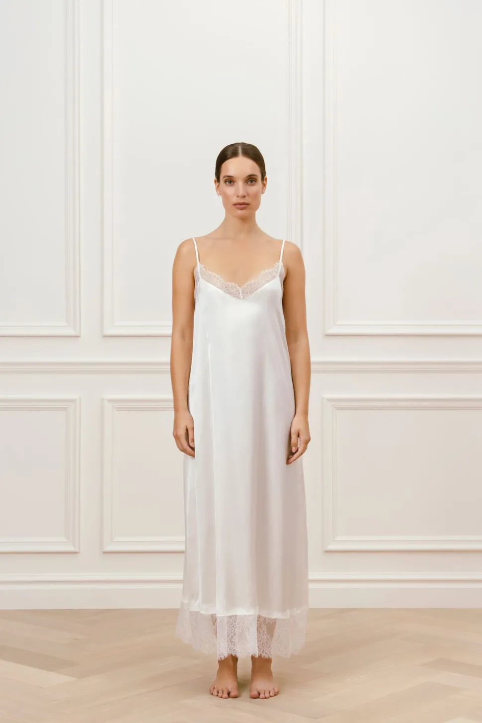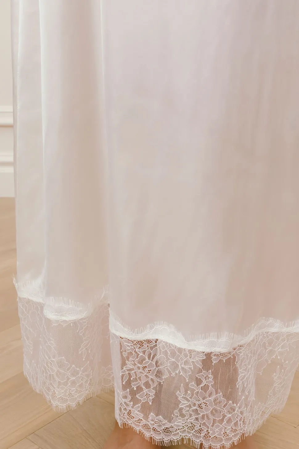 Nattlinne med spetsdetaljer. Perfekt att kombinera med vår matchande morgonrock.