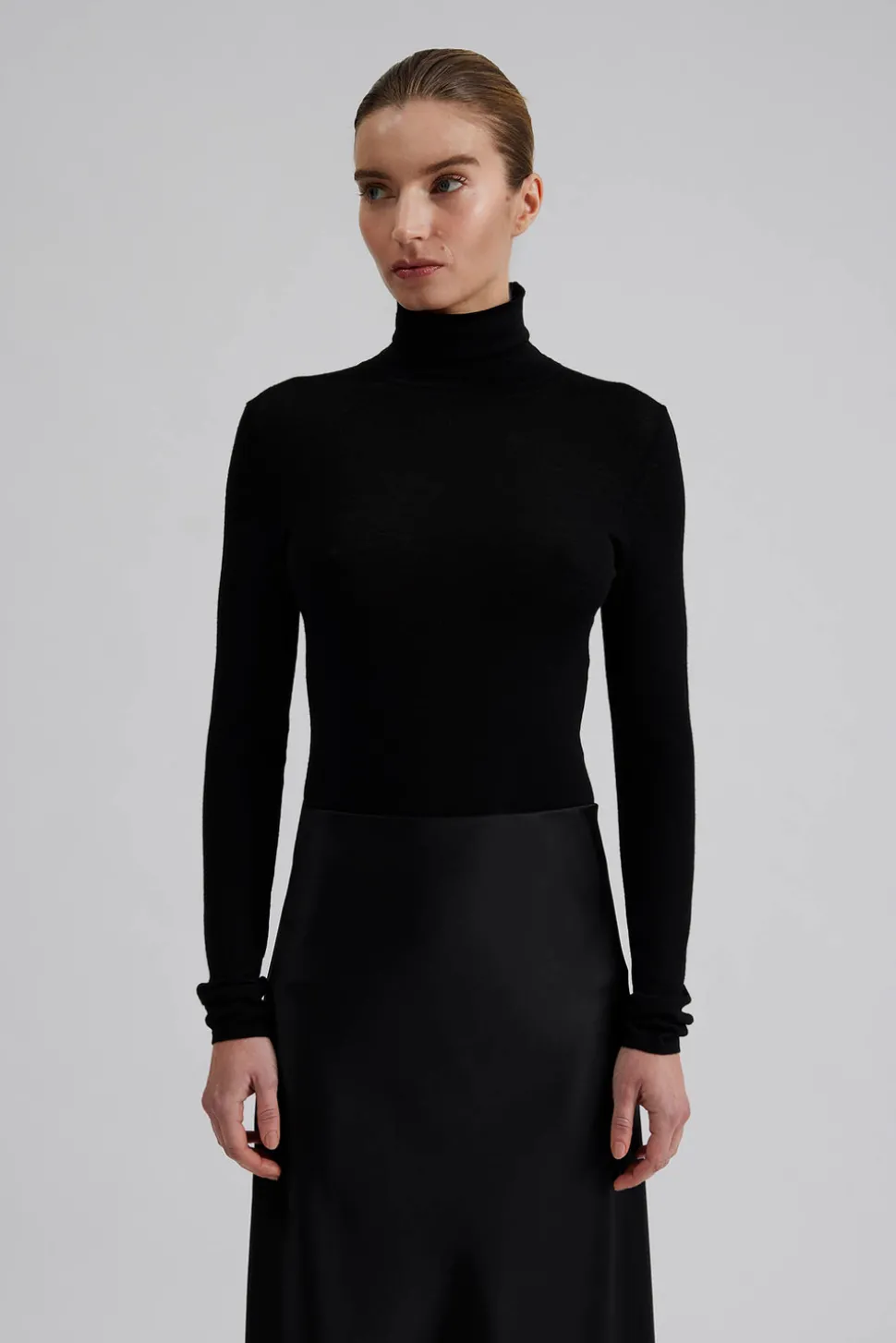 Långärmad topp i ull med polokrage.