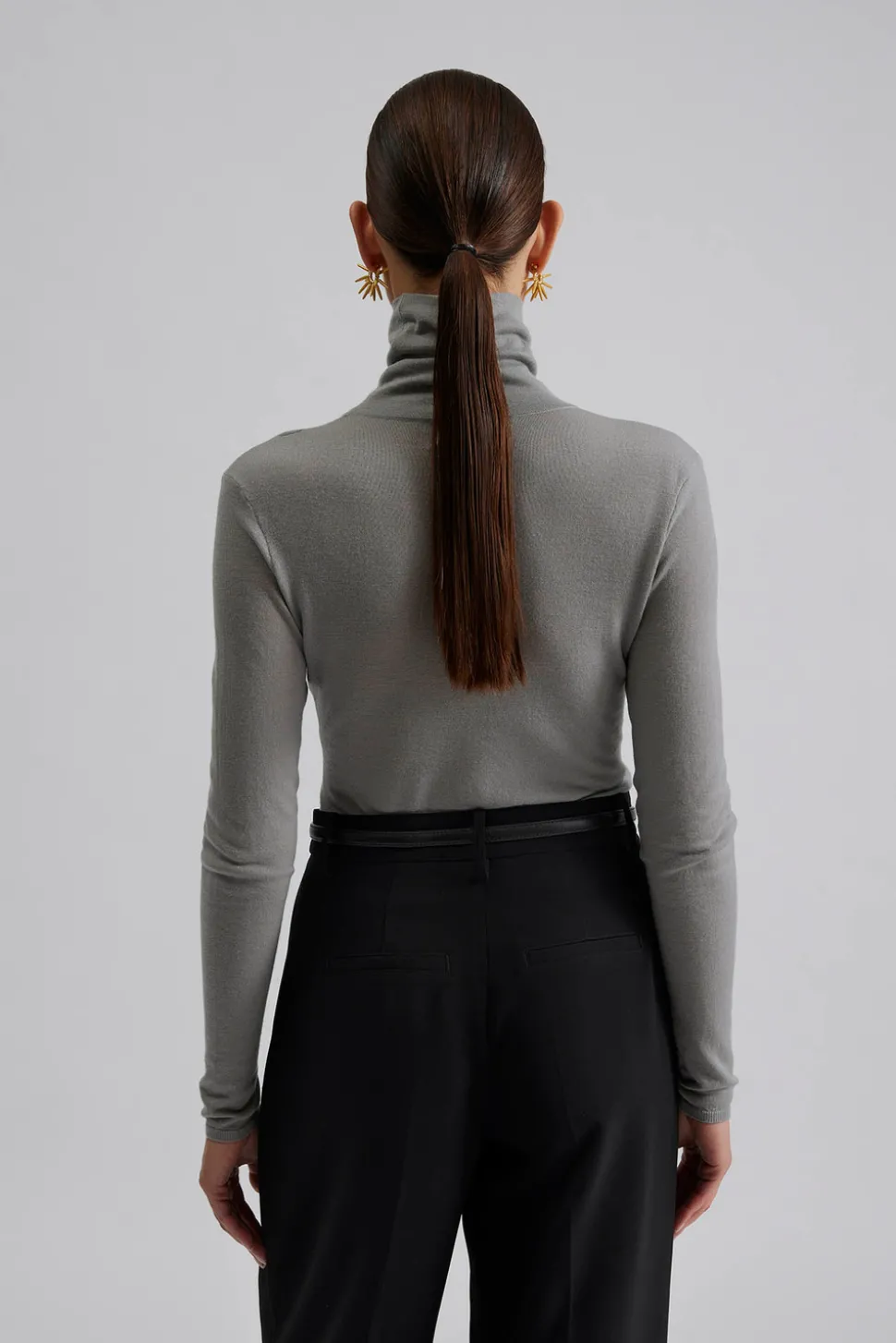 Långärmad topp i ull med polokrage.