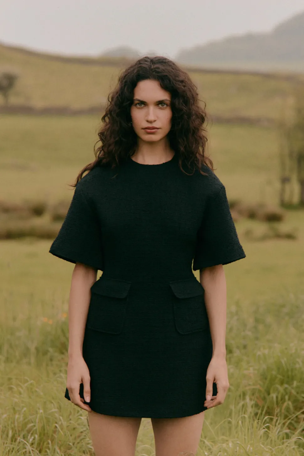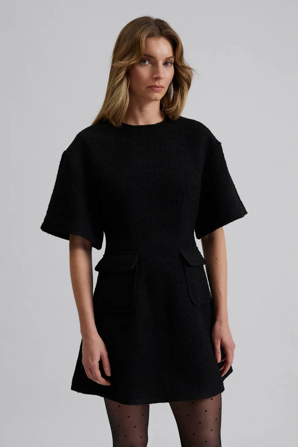Miniklänning i boucle med fickor